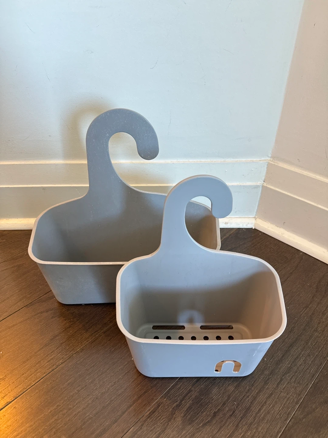 Selling a set of two grey hanging storage baskets. They're in great shape and ready to help organize your space! Perfect for bathrooms, kitchens, or anywhere you need a little extra storage