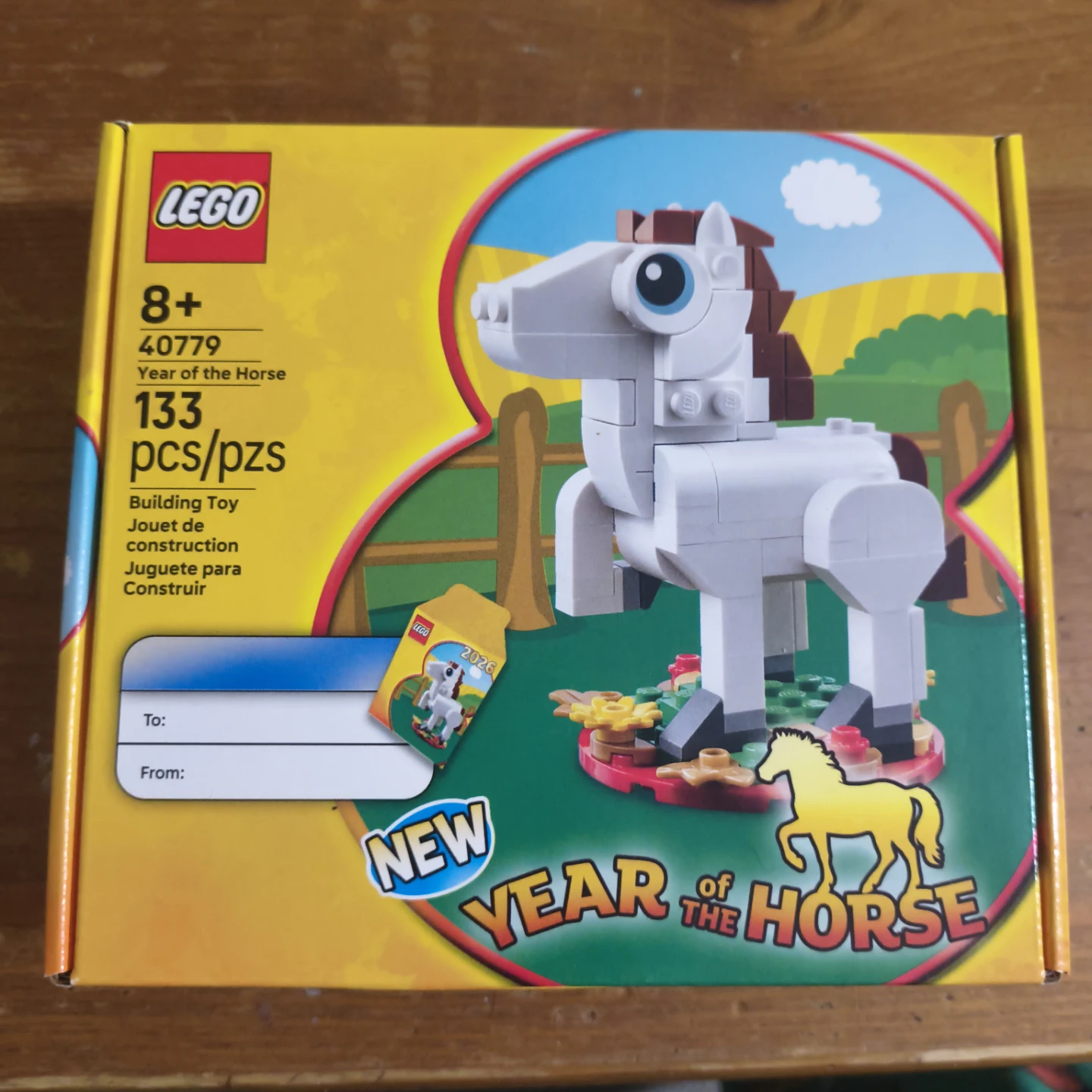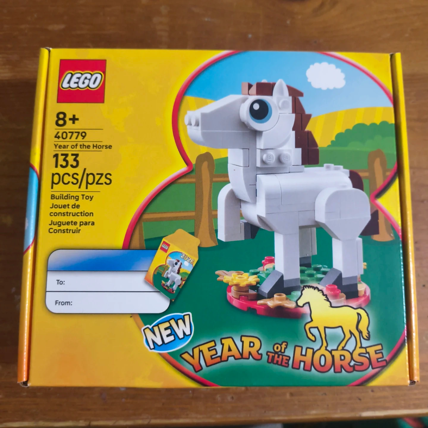 Selling a brand new LEGO set, number 40779, Year of the Horse! It's still sealed in the box and ready to be built. This set is recommended for ages 8 and up and contains 133 pieces. Perfect for LEGO enthusiasts or as a gift!