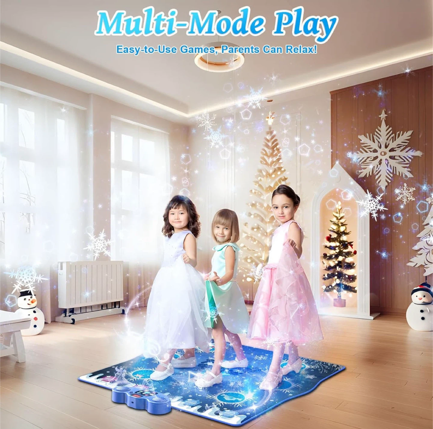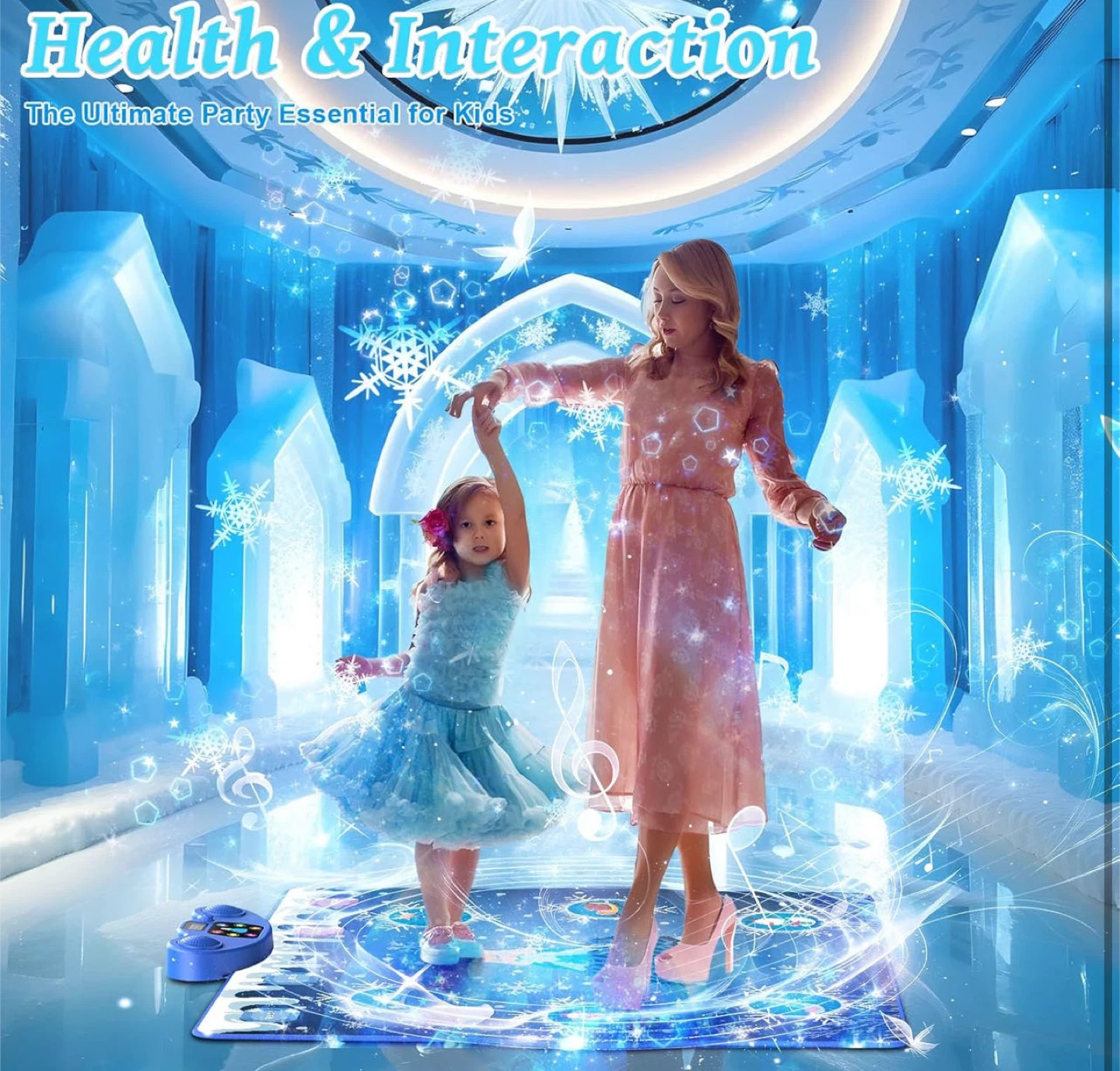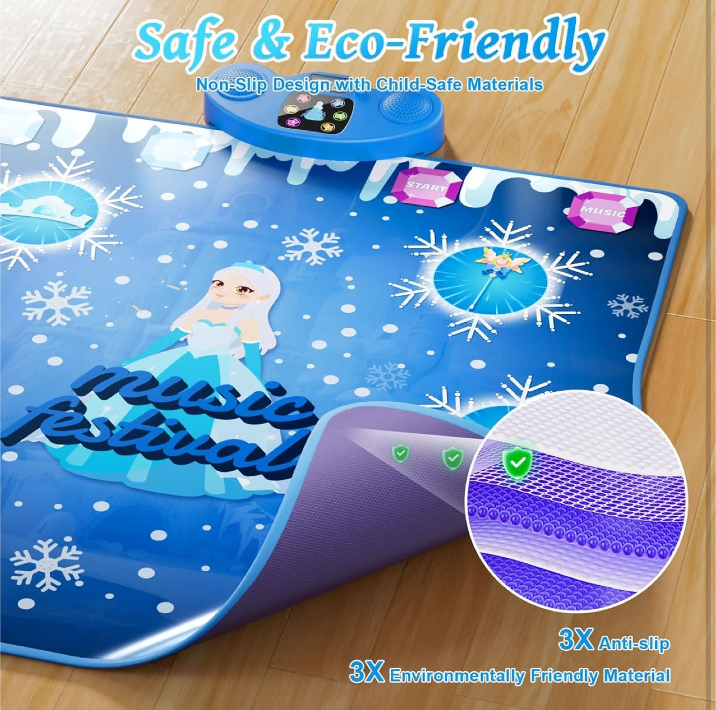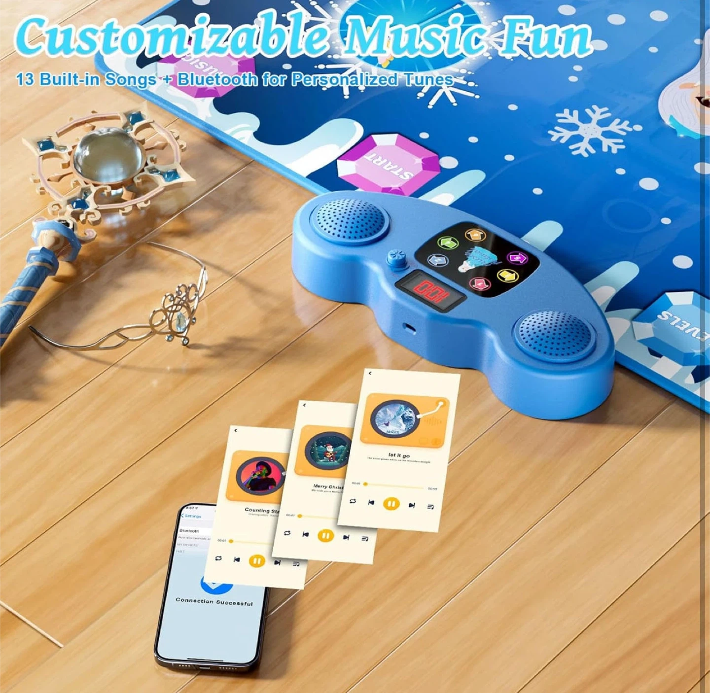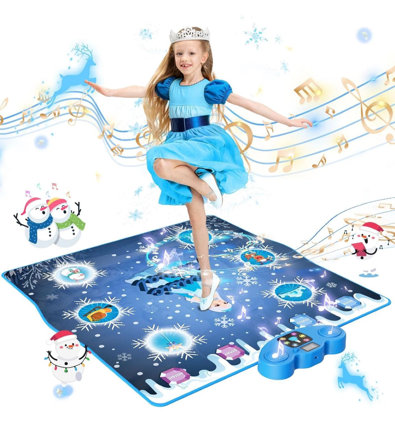 Dance Mat, Ice and Snow 6-Button Princess Dance Mat for Kids Ages 4-8, Bluetooth Music Control, 13 Built-in Music, 6 Game Modes Kids Dance Mat, Christmas Birthday Gift for Girls Boys