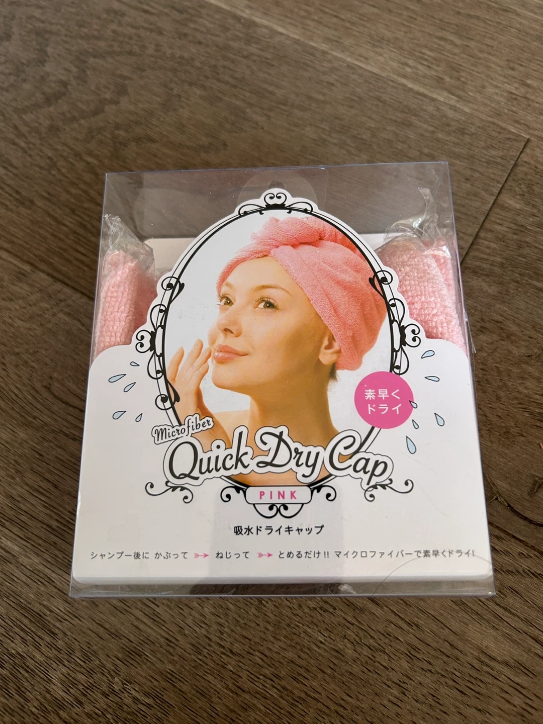 I'm selling a brand new Microfiber Quick Dry Cap in pink! It's still in its original packaging. This cap is designed to quickly dry your hair after a shower. It's made of absorbent microfiber material. The size is approximately 23 x 53 cm.