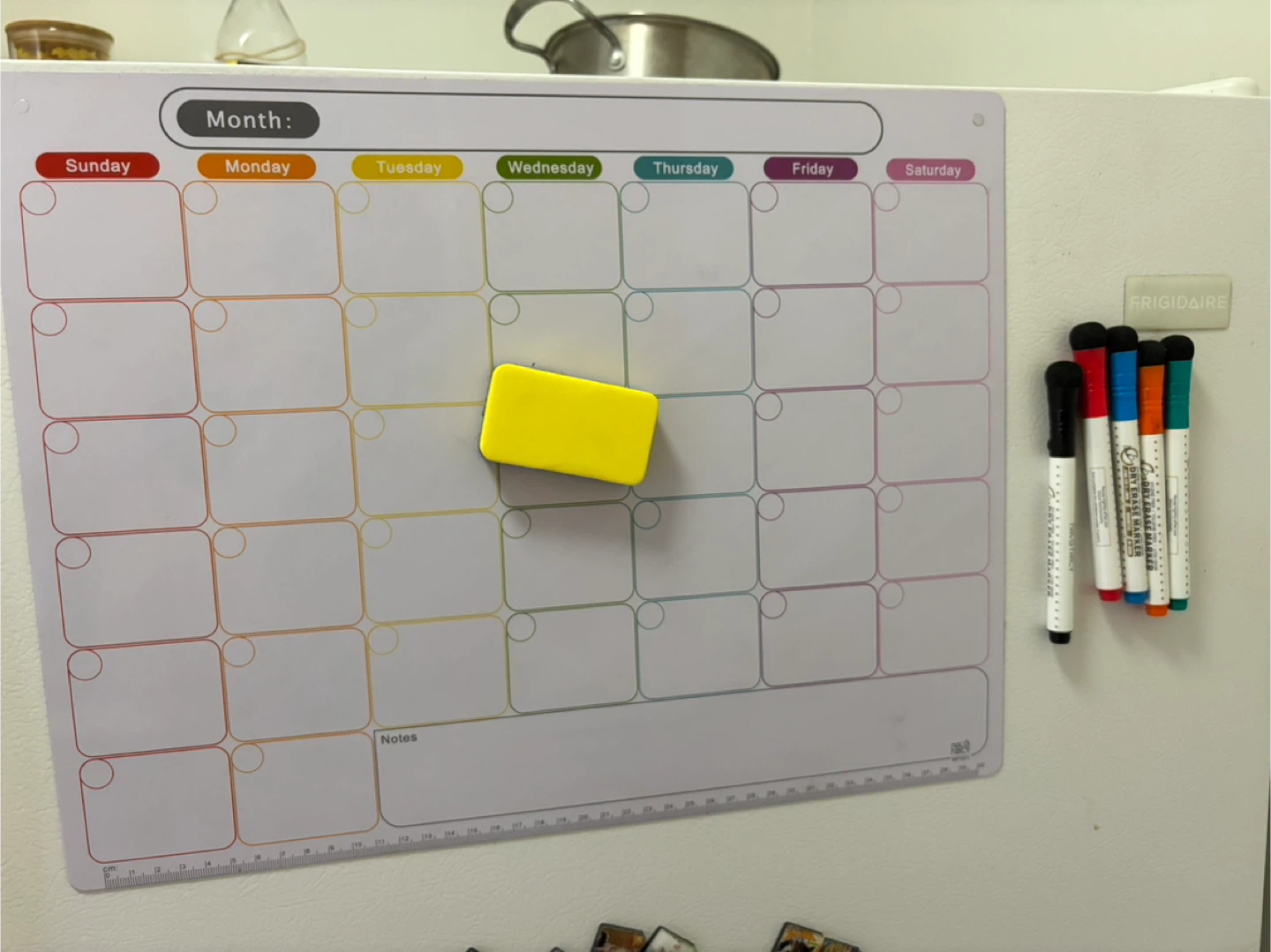 Selling a magnetic monthly calendar whiteboard, perfect for keeping track of your schedule! It comes with dry erase markers and an eraser. It can be attached to a refrigerator or any magnetic surface. Great for home or office use!