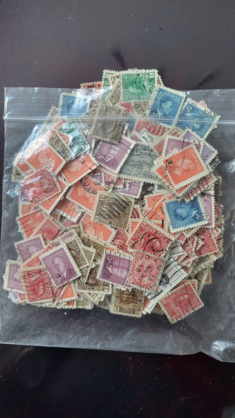 Here's a bag full of vintage Canadian postage stamps! They feature various designs and denominations, including 2 cent, 3 cent, 5 cent, 13 cent stamps and more! Perfect for collectors or anyone interested in Canadian history and postal heritage. These must be more than 500 and little less than 620 in number!