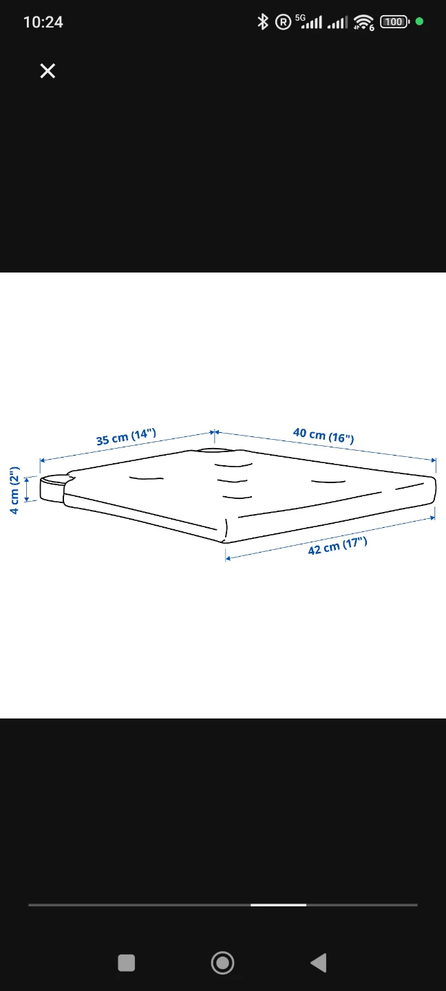 The cushion measures 35 cm (14") by 42 cm (17"), and is 4 cm (2") thick at the edge and 40 cm (16") wide at the back. Perfect for making your little one comfy during meal times