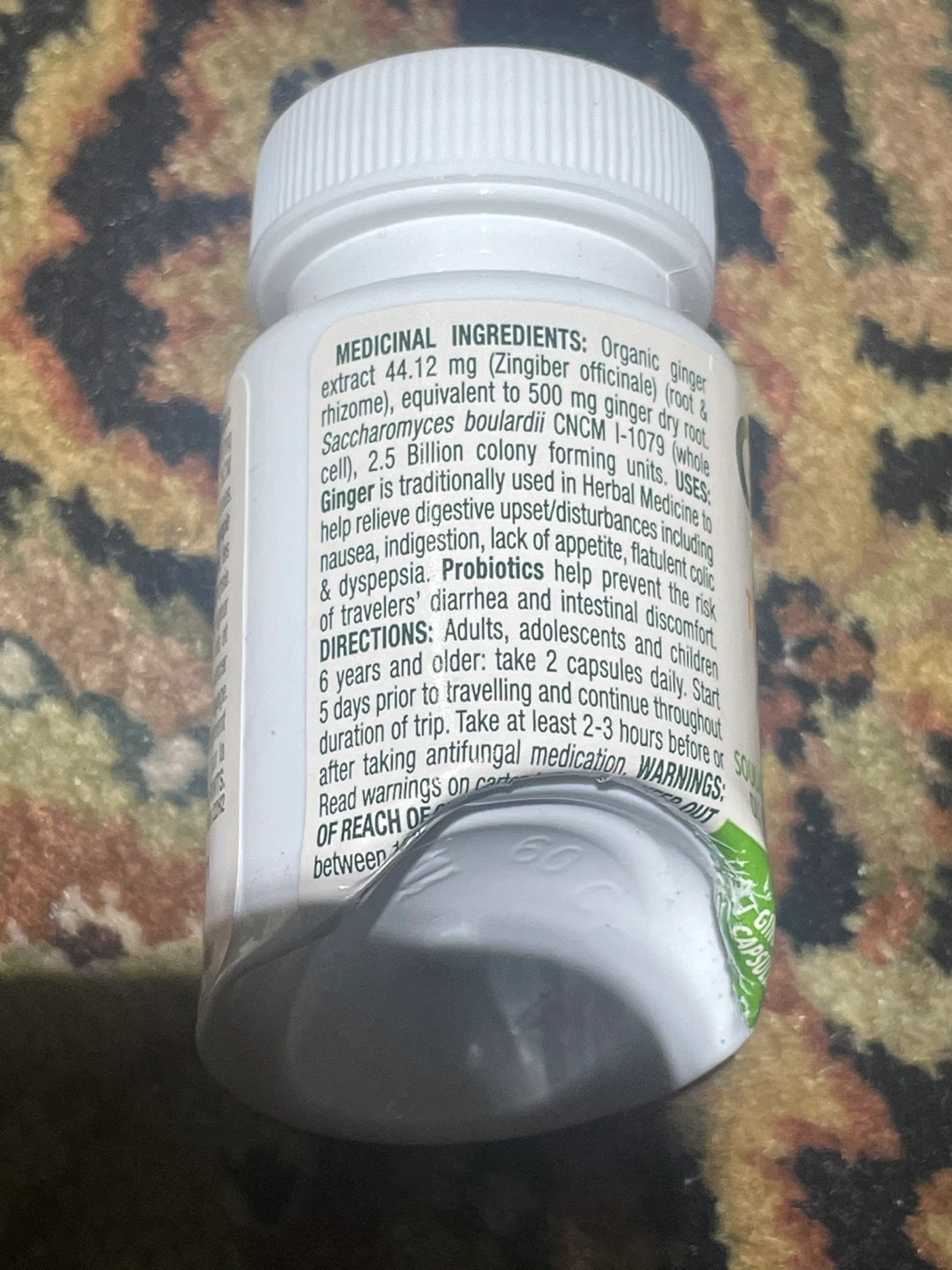 Selling a bottle of Gravol Ginger Traveler's Shield Probiotic. It's designed to help with nausea and reduce the risk of traveler's diarrhea. The expiration date is May 2027.