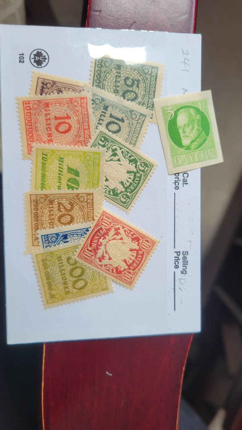 Selling a collection of vintage German stamps, including stamps from Bayern and Deutsches Reich. The stamps feature various denominations and designs. Mint never hinged and one or 2 lighly hinged, hinge removed!!!