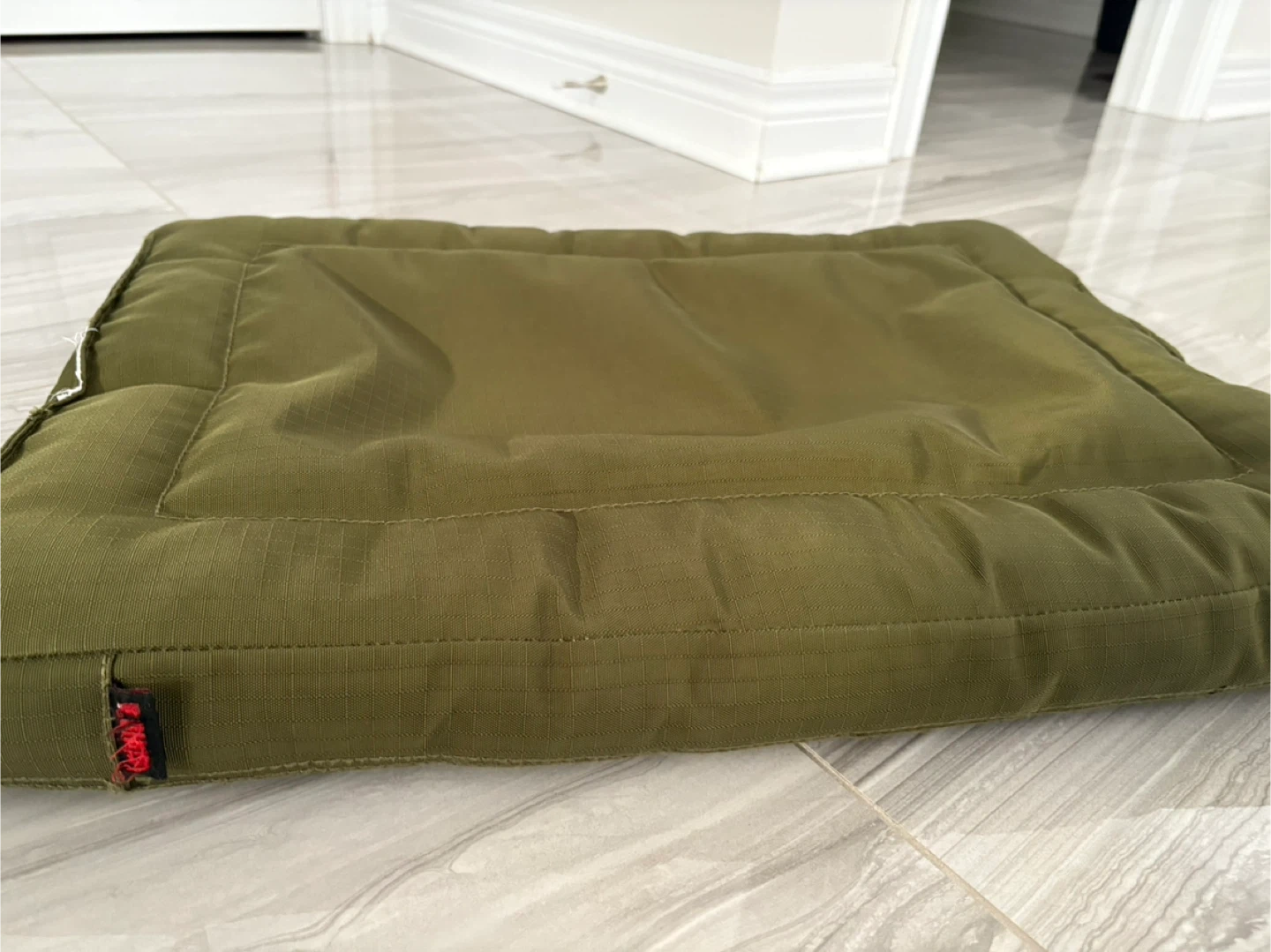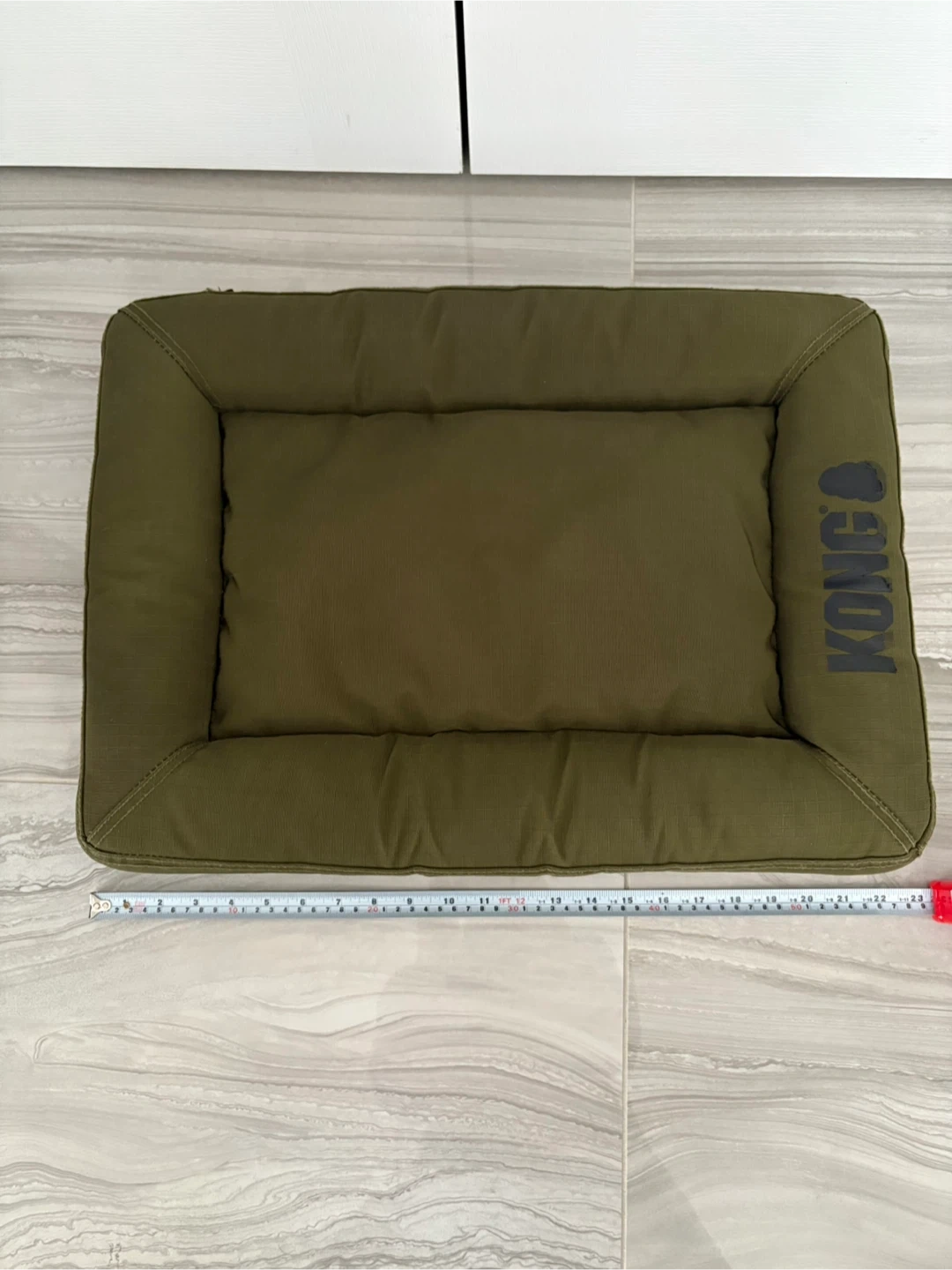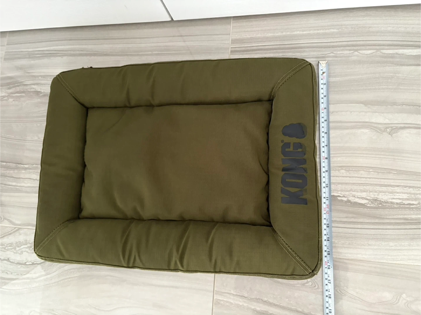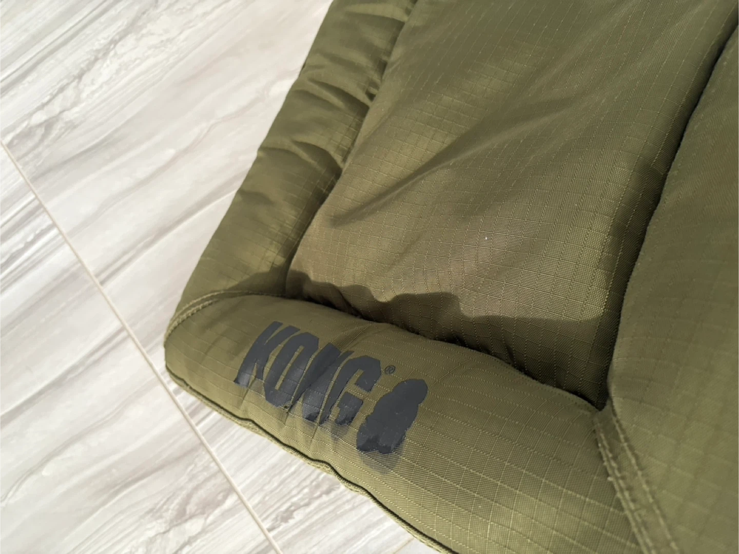 Selling a gently used Kong dog bed in olive green. It's super comfy for your furry friend! There is some minor wear and tear as shown in the photos, but it's still got lots of life left in it. Perfect for a small to medium sized dog
