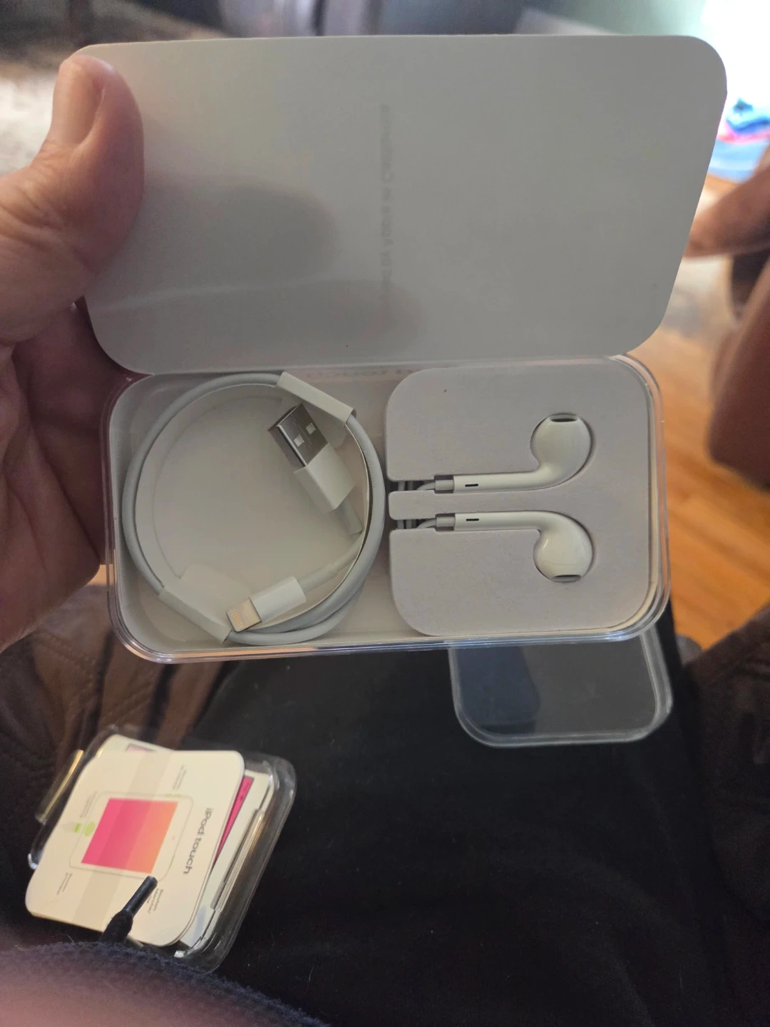 It comes with a pink iPod touch mounted in original Apple protective case, EarPods, and Lightning to USB Cable plus documentation.