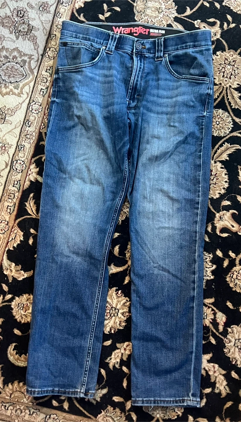 Selling a pair of Wrangler jeans in size hight is 40inch and waist is 18inch .They are in good condition and ready for a new owner. The jeans have a classic look and fit, perfect for everyday wear