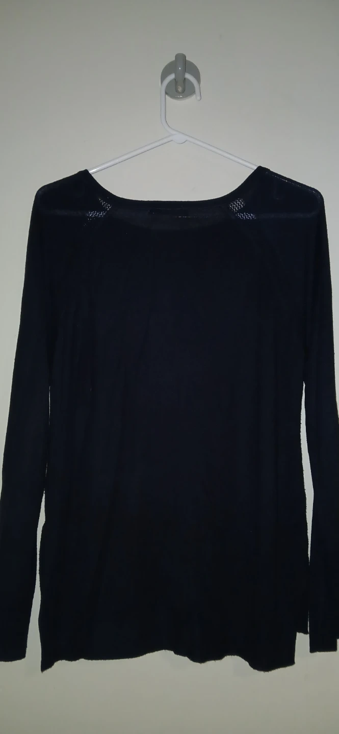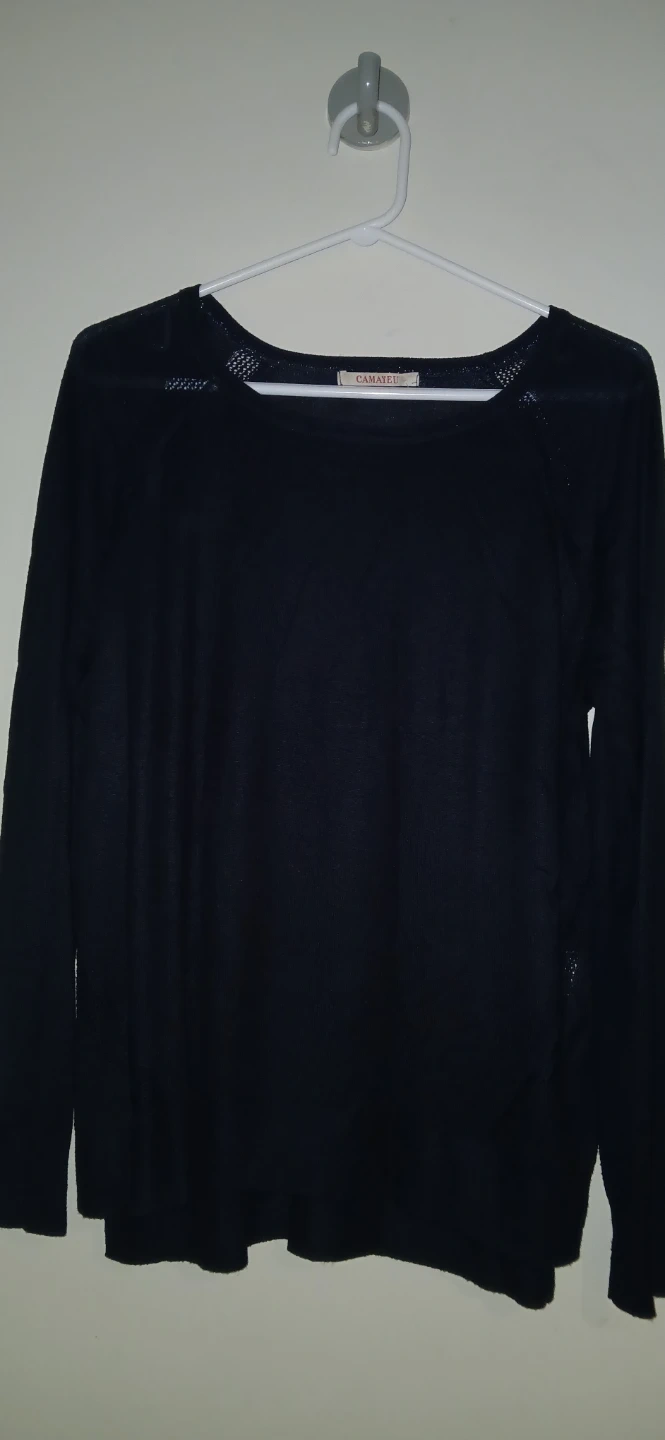 Here's a black long sleeve top from Camateu. It's in great condition and ready for a new wardrobe.