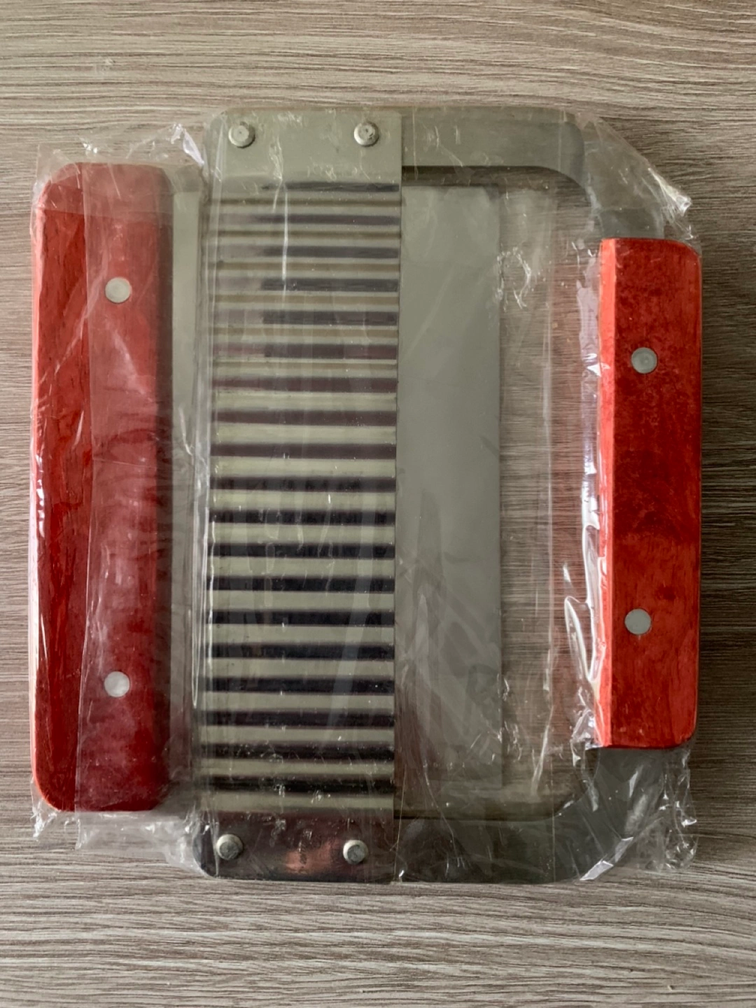 Comes with one stainless steel wavy and one straight scraper/slicer.