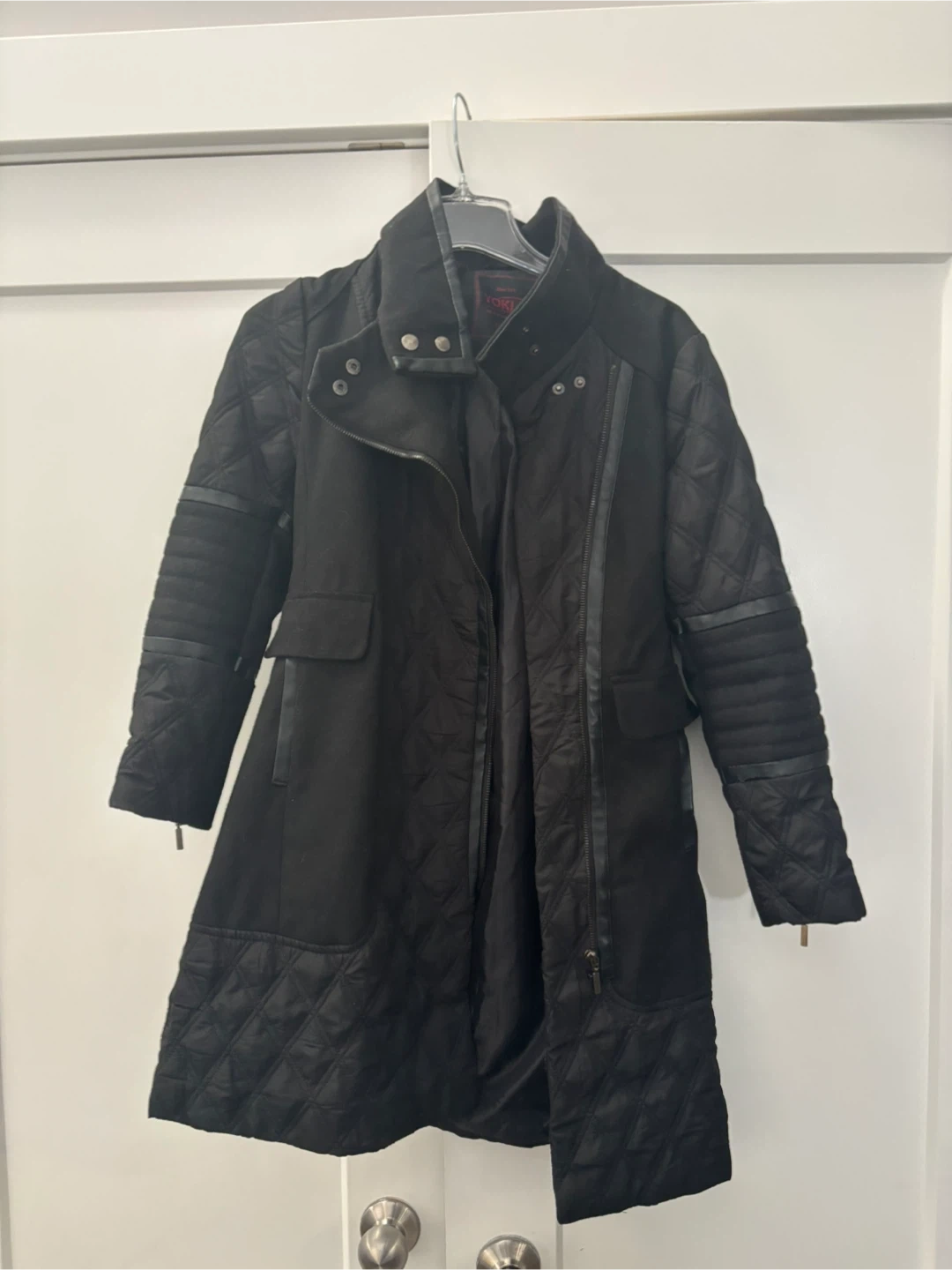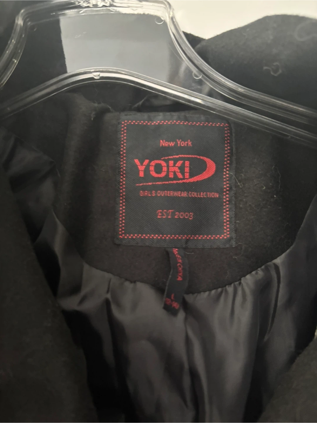Selling a stylish black coat from Yoki New York's Girls Outerwear Collection. It's a size L and features a quilted design. Perfect for keeping warm and looking fashionable!