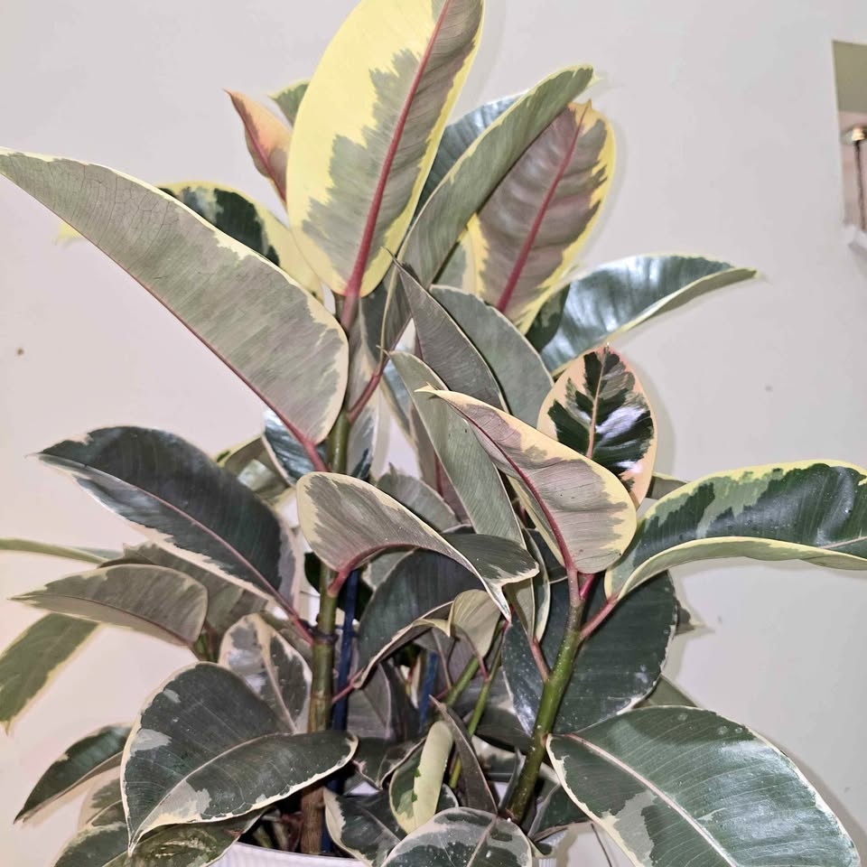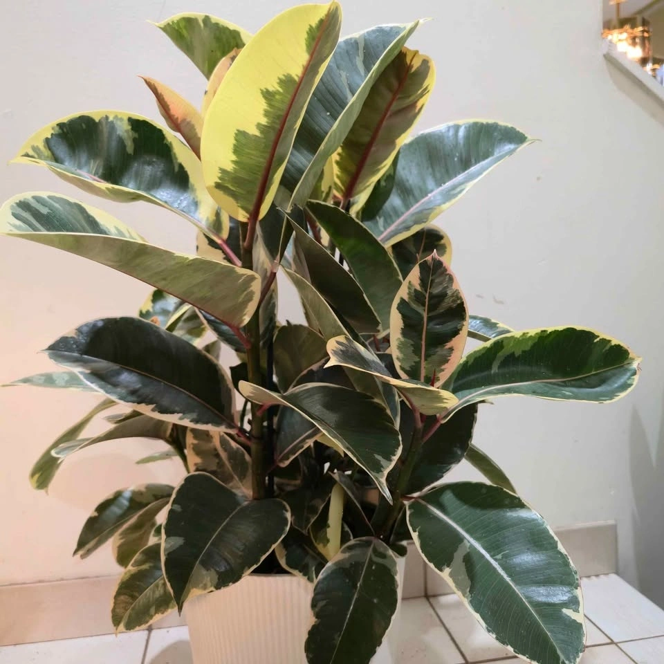 Verigated Rubber Tree | Includes Pot + Cover (Ficus Elastica)