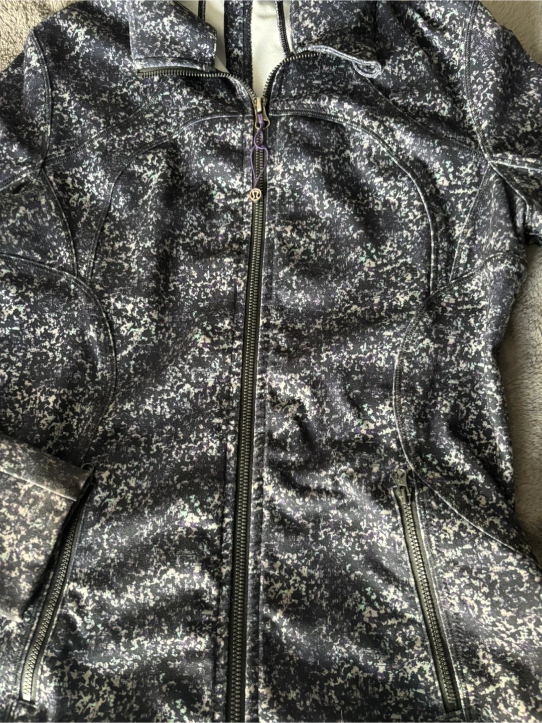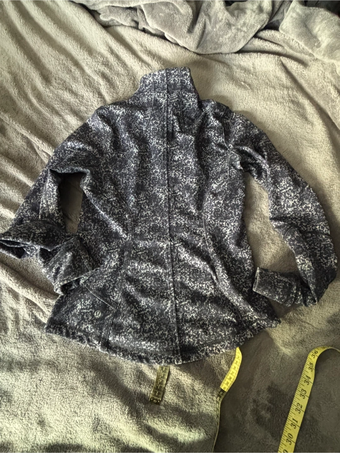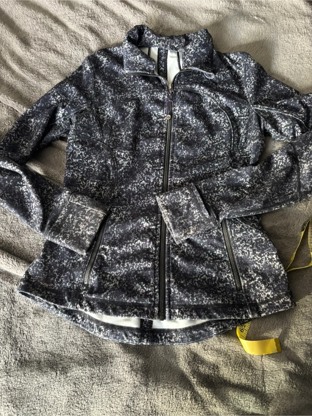 Lululemon Define Jacket in a size 8 The jacket is in great condition. It has a full zipper and two front pockets with zippers. The pattern is a mix of black and white.