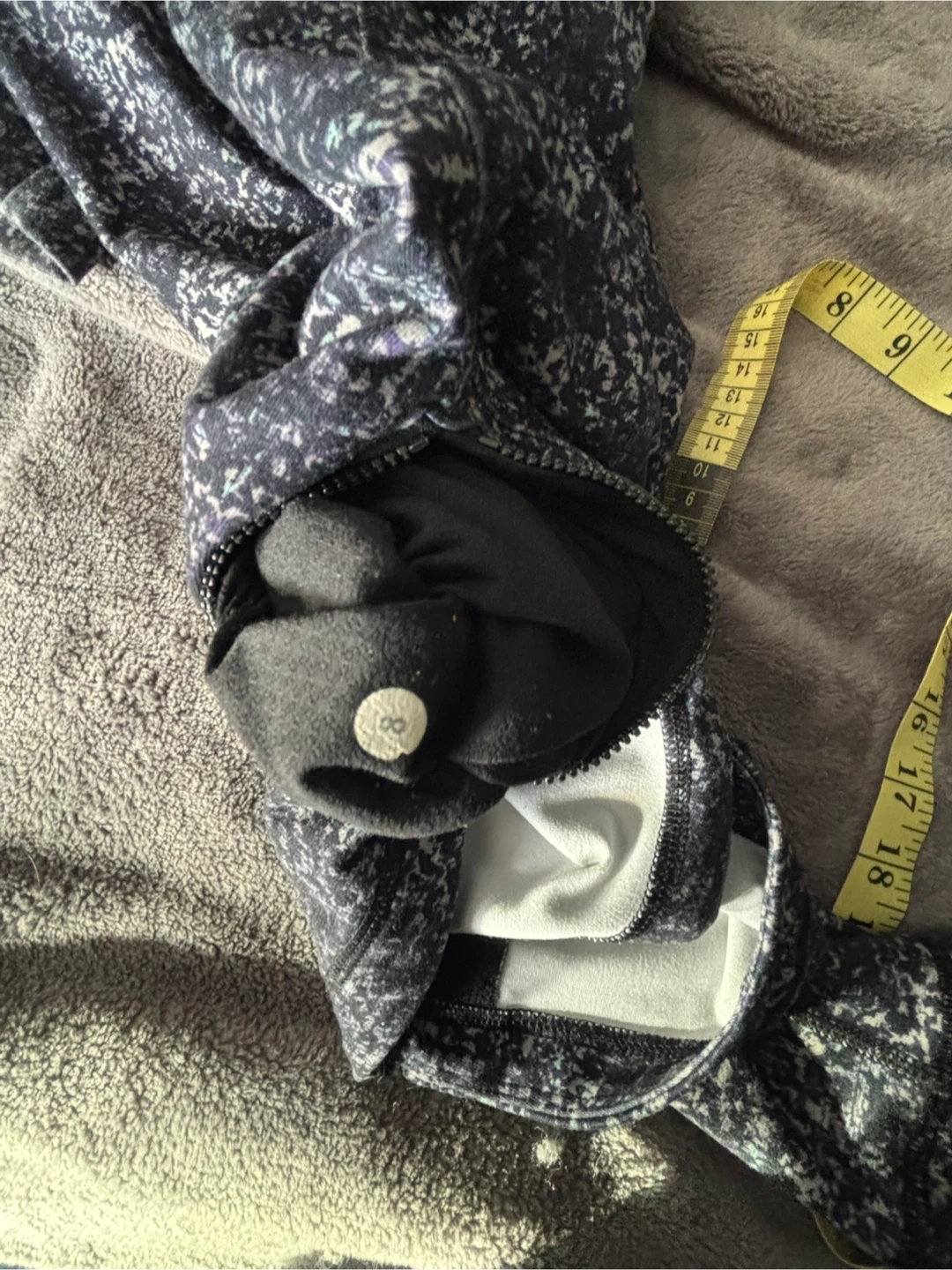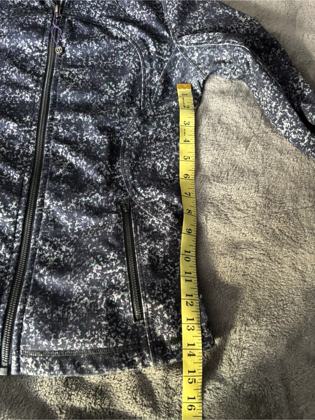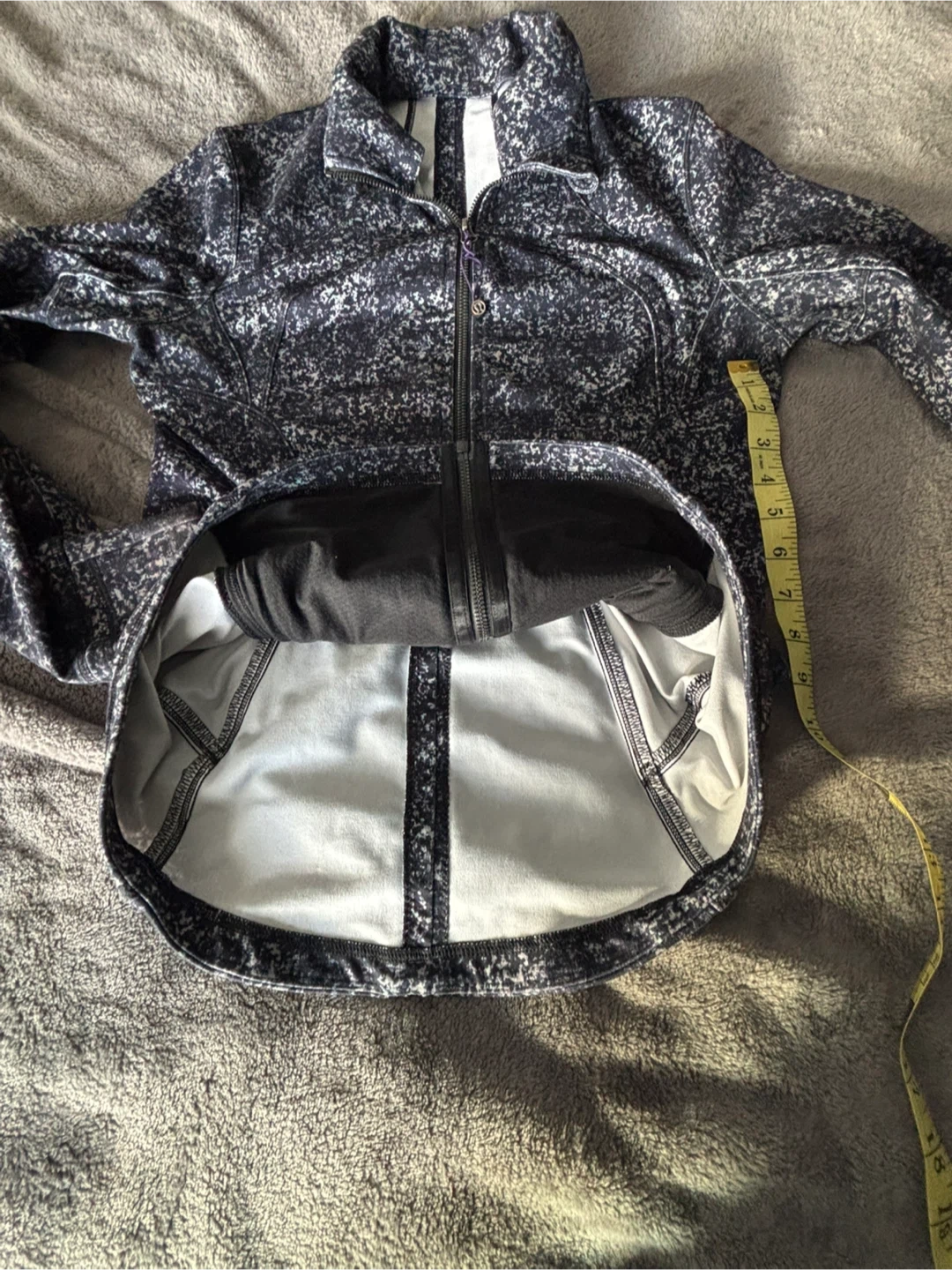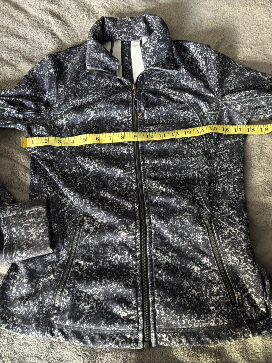 Lululemon Define Jacket in a size 8 The jacket is in great condition. It has a full zipper and two front pockets with zippers. The pattern is a mix of black and white.