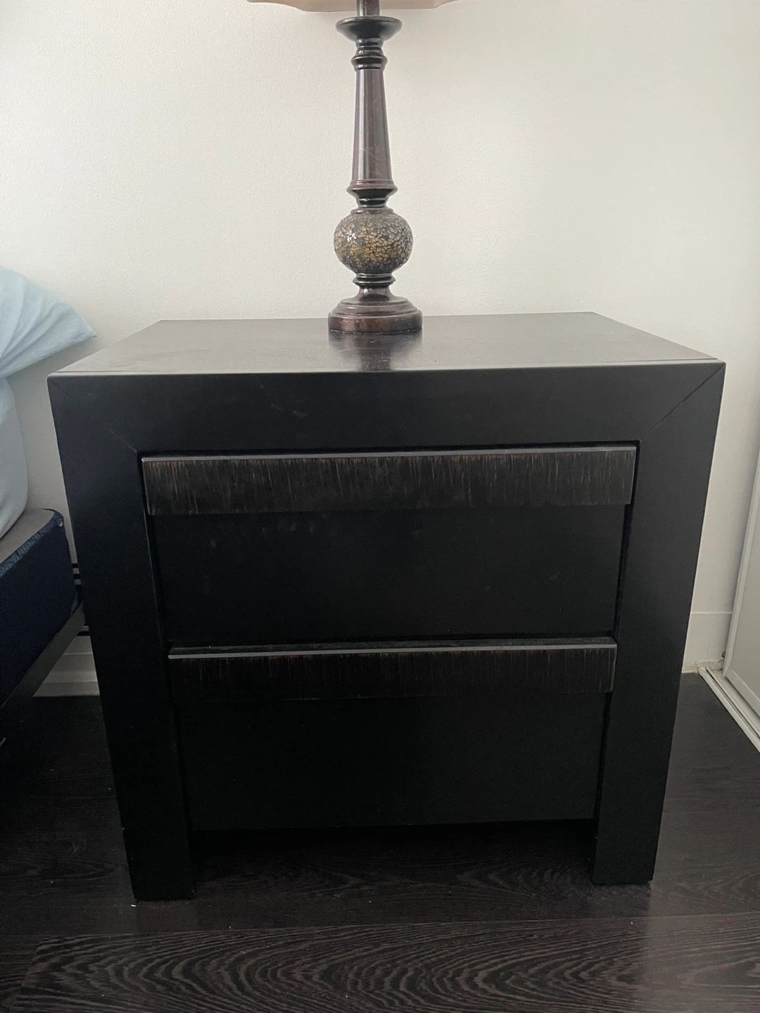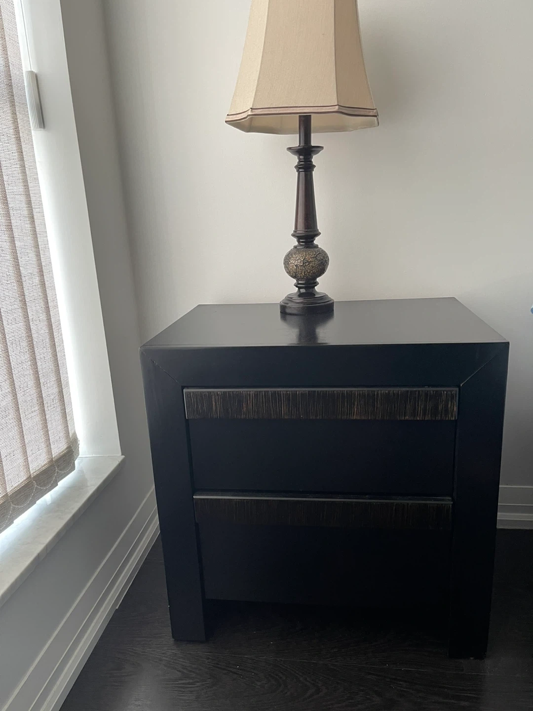 A dresser with a mirror and a 2 nightstand. Both 4 pieces are in great condition and would look great in any bedroom! No bed