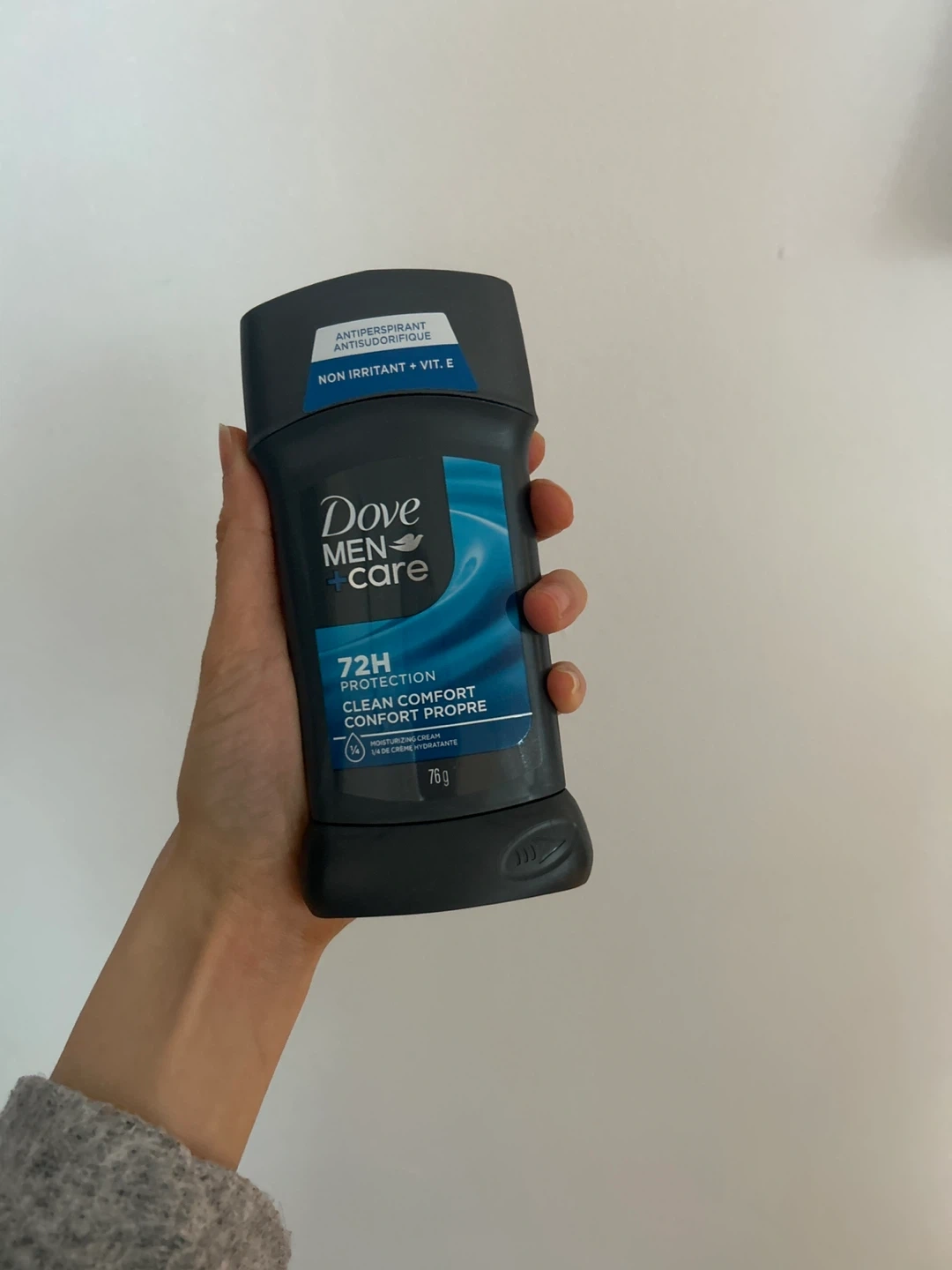 Selling a Dove Men+Care Clean Comfort antiperspirant stick! It offers 72-hour protection and is non-irritant with added Vitamin E. Contains 1/4 moisturizing cream. The size is 76g