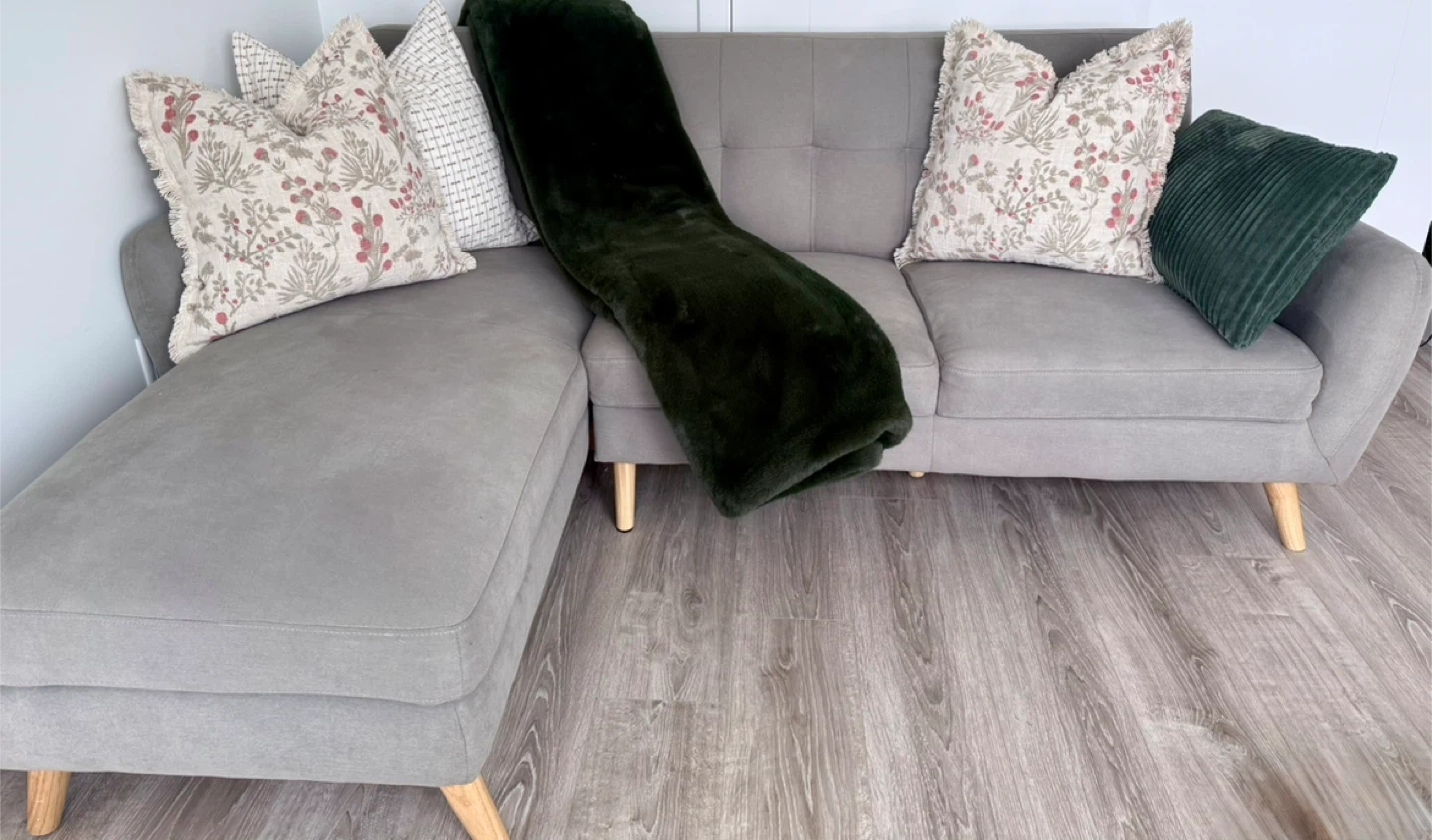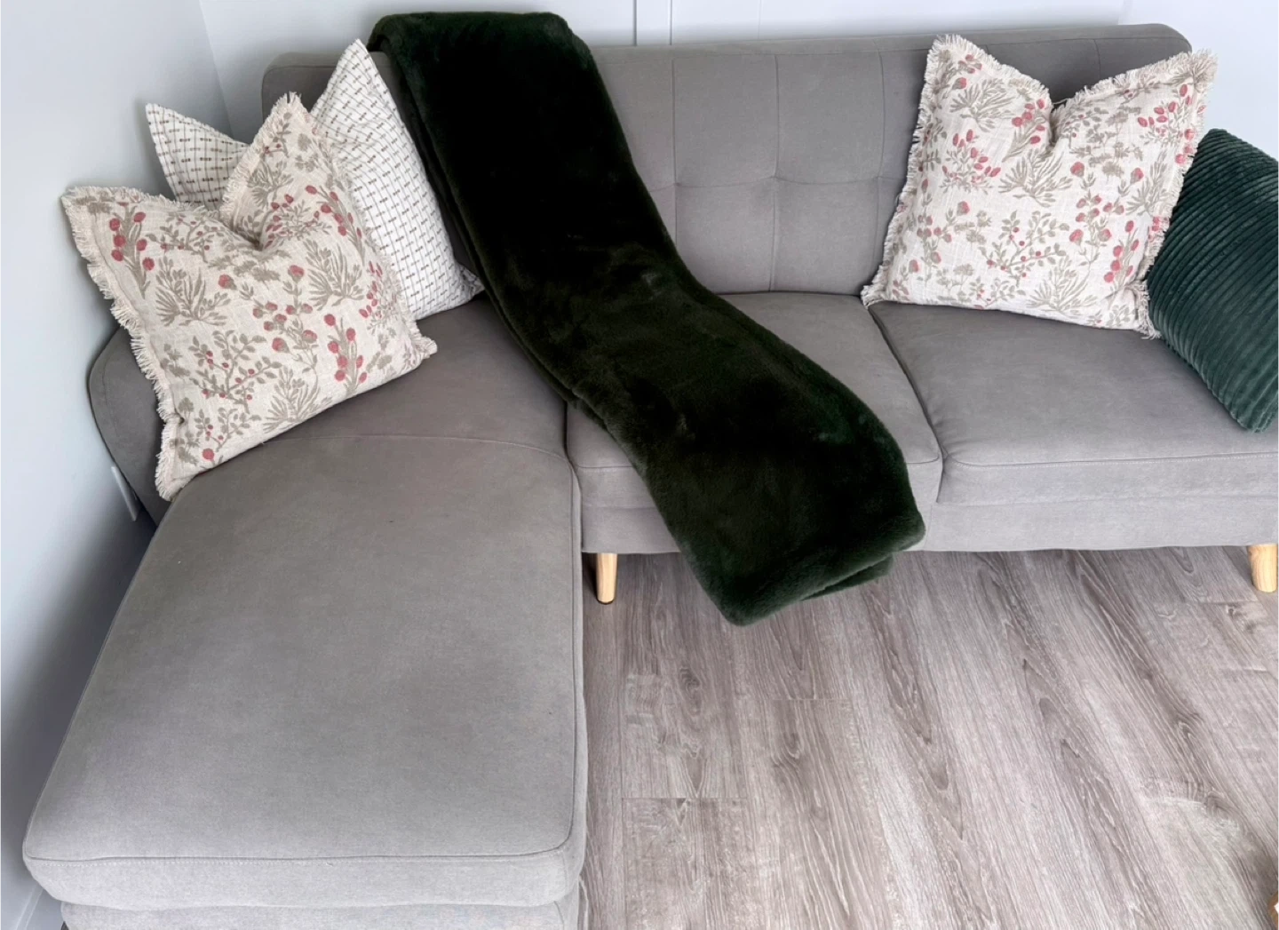 Selling a comfy grey sectional sofa! It's in great shape and would be perfect for a living room or den. It features a chaise lounge on one side for extra comfort and relaxation perfect for condos.