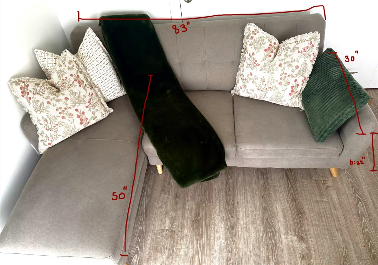 Grey Sectional Sofa with Chaise - 83" x 50"