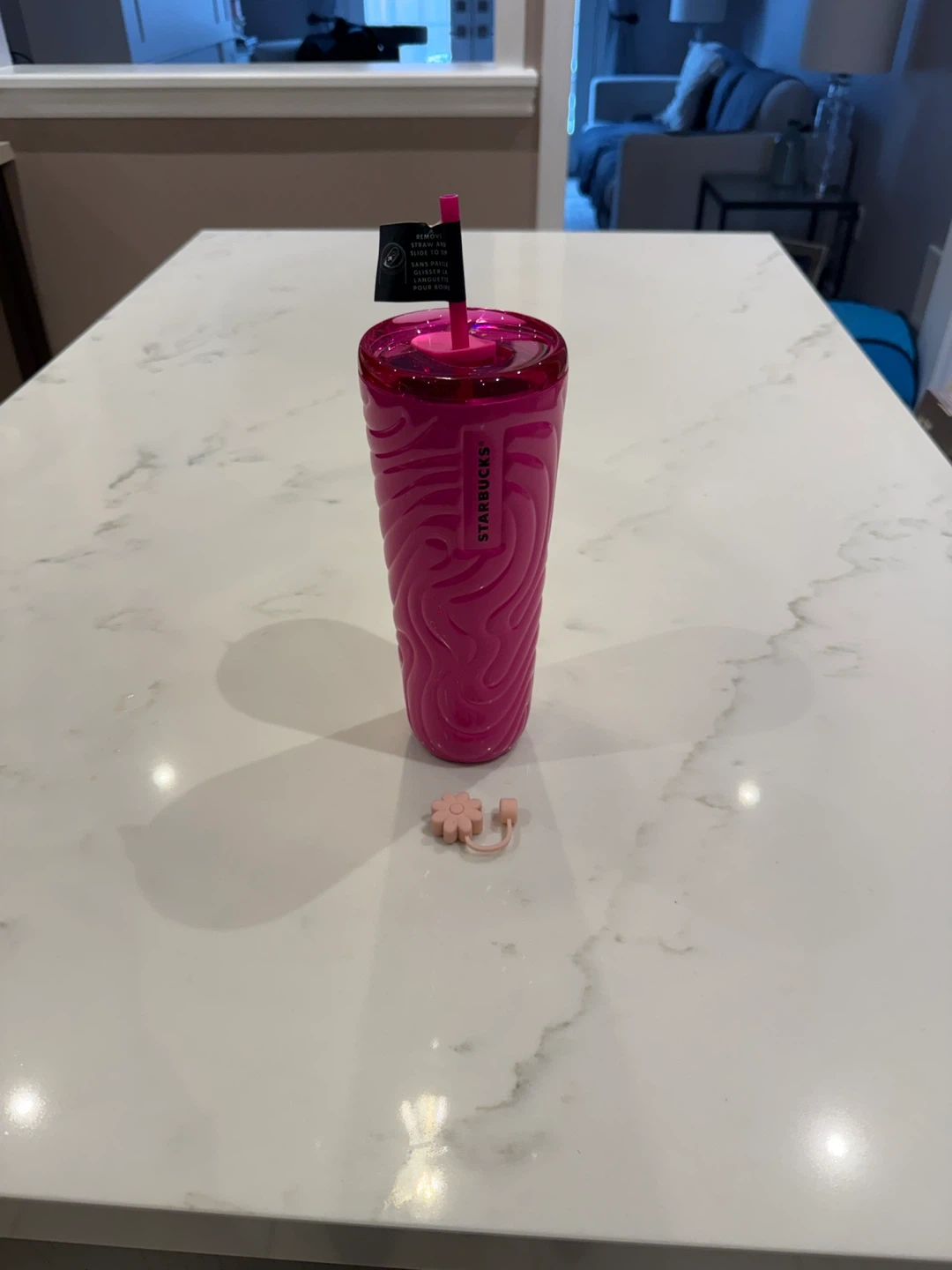 Selling a Starbucks tumbler in a vibrant pink colour! It comes with a matching straw and a cute flower accessory topper for the straw. Perfect for keeping your drinks cold on the go. New with Tags.