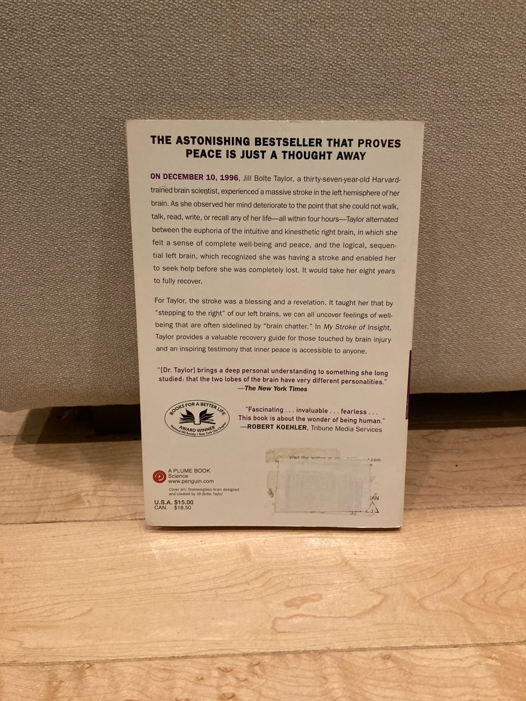 Selling the book "My Stroke of Insight" by Jill Bolte Taylor, a New York Times Bestseller. It's a personal journey of a brain scientist. This book is a deep personal understanding of something to help you understand yourself!