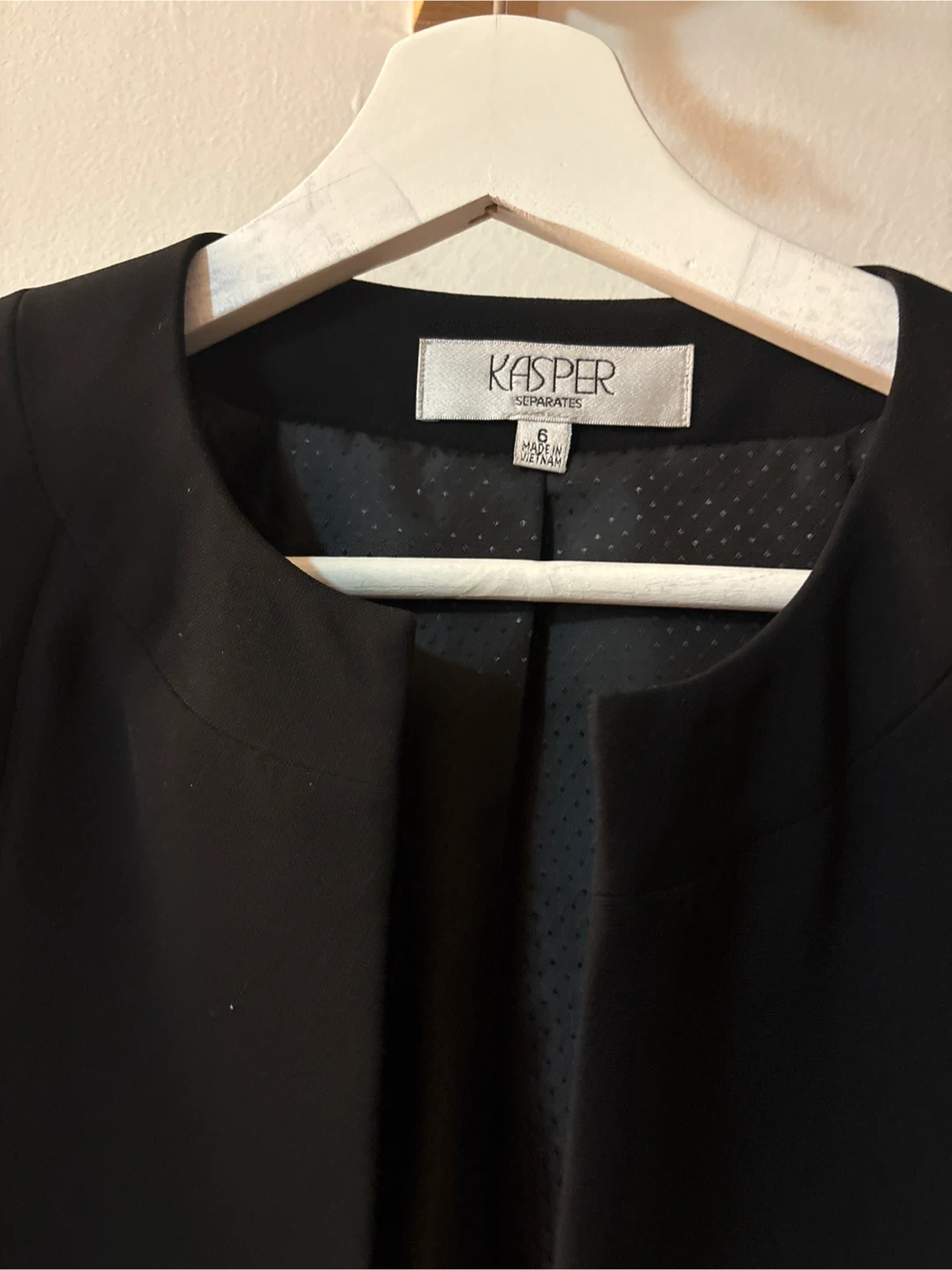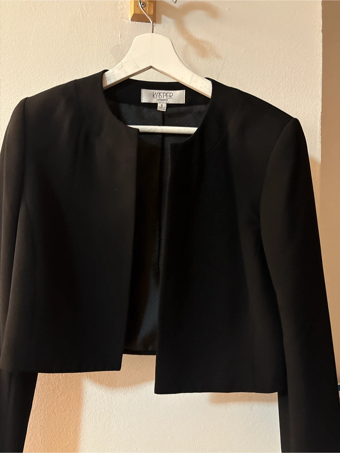 Buy & SellKasper Separates Black Cropped Blazer - Size 6Kasper Separates Black Cropped Blazer - Size 6$13Selling a Kasper Separates cropped blazer in black. It's a size 6 and in great condition! Perfect for adding a touch of sophistication to any outfitBrandKasperWHERE TO MEETClose to Harlem HospitalView MapSELLERverifiedDianaCentral Harlem650 reviews0 chats·0 favorites·9 viewsSEND CHAT TO SELLERHi Diana! I’m interested in your listing.Hi Diana! I’m interested in your listing.Get the Karrot app to chatSign In to chat