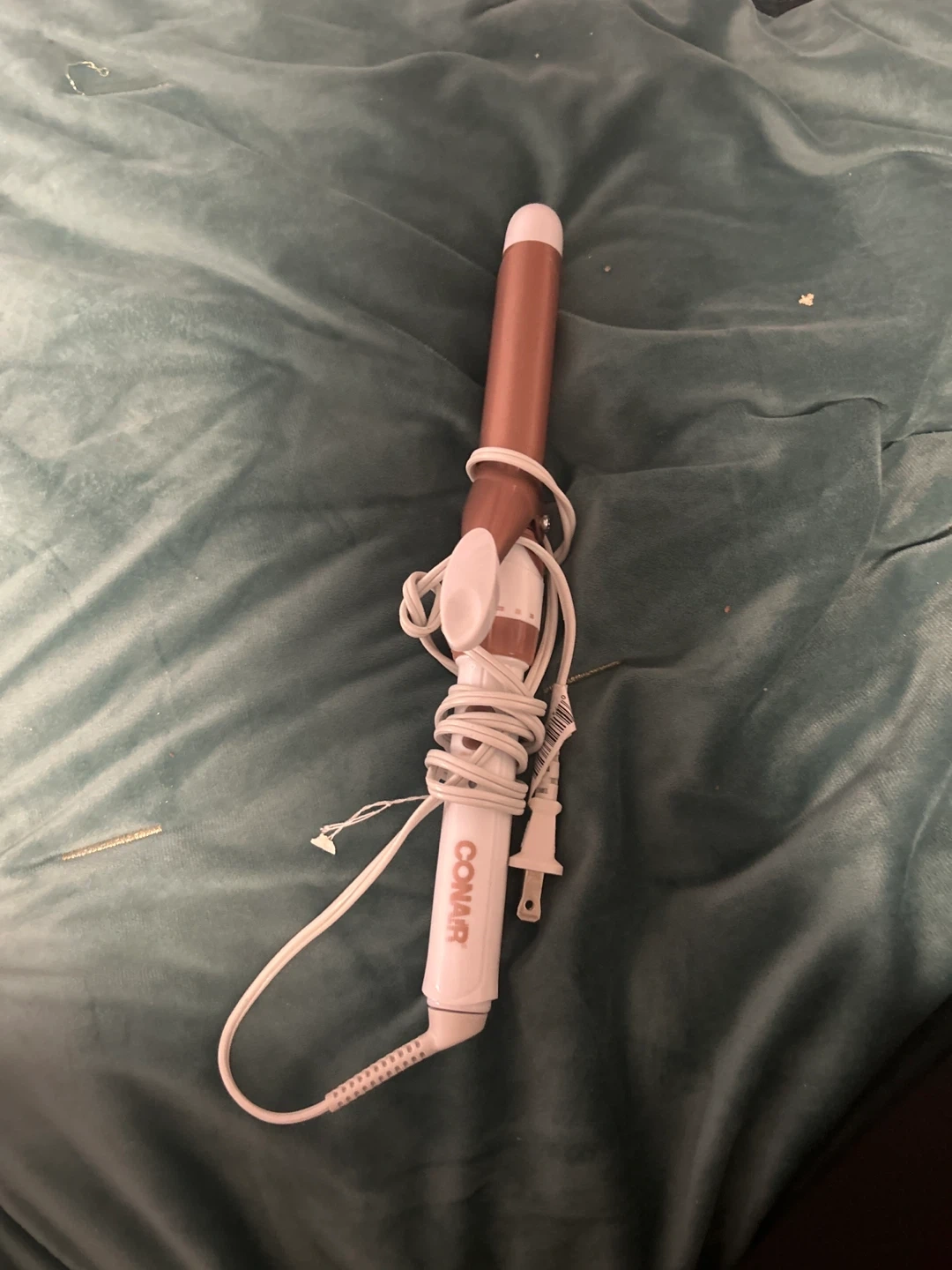 Selling a Conair curling iron in great condition! It features a white and rose gold design. Perfect for creating beautiful curls and waves
