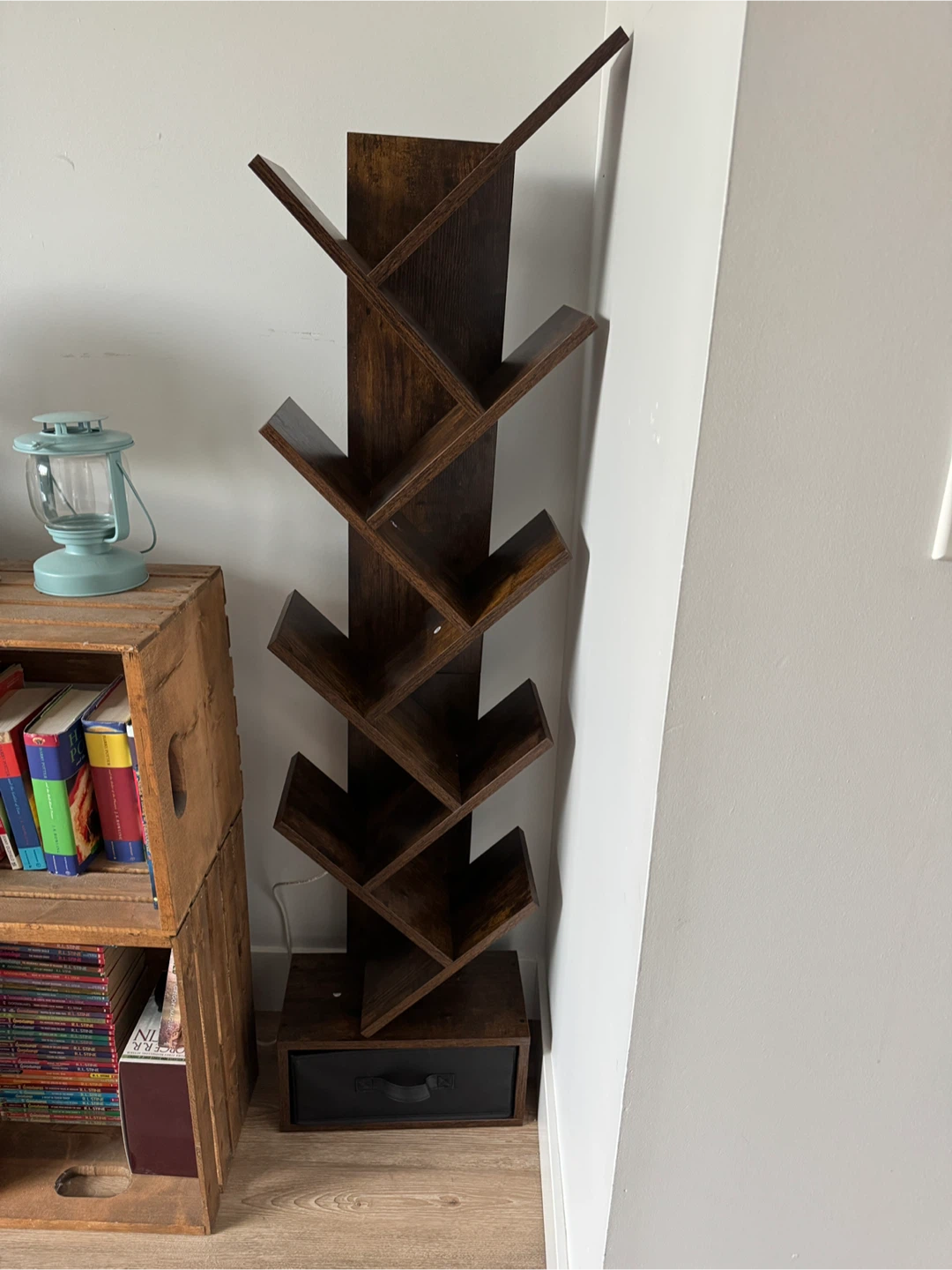 Selling a Millwood Pines Todi Geometric Storage Bookcase in brand new condition! It's a unique piece that adds a touch of modern flair to any room.
