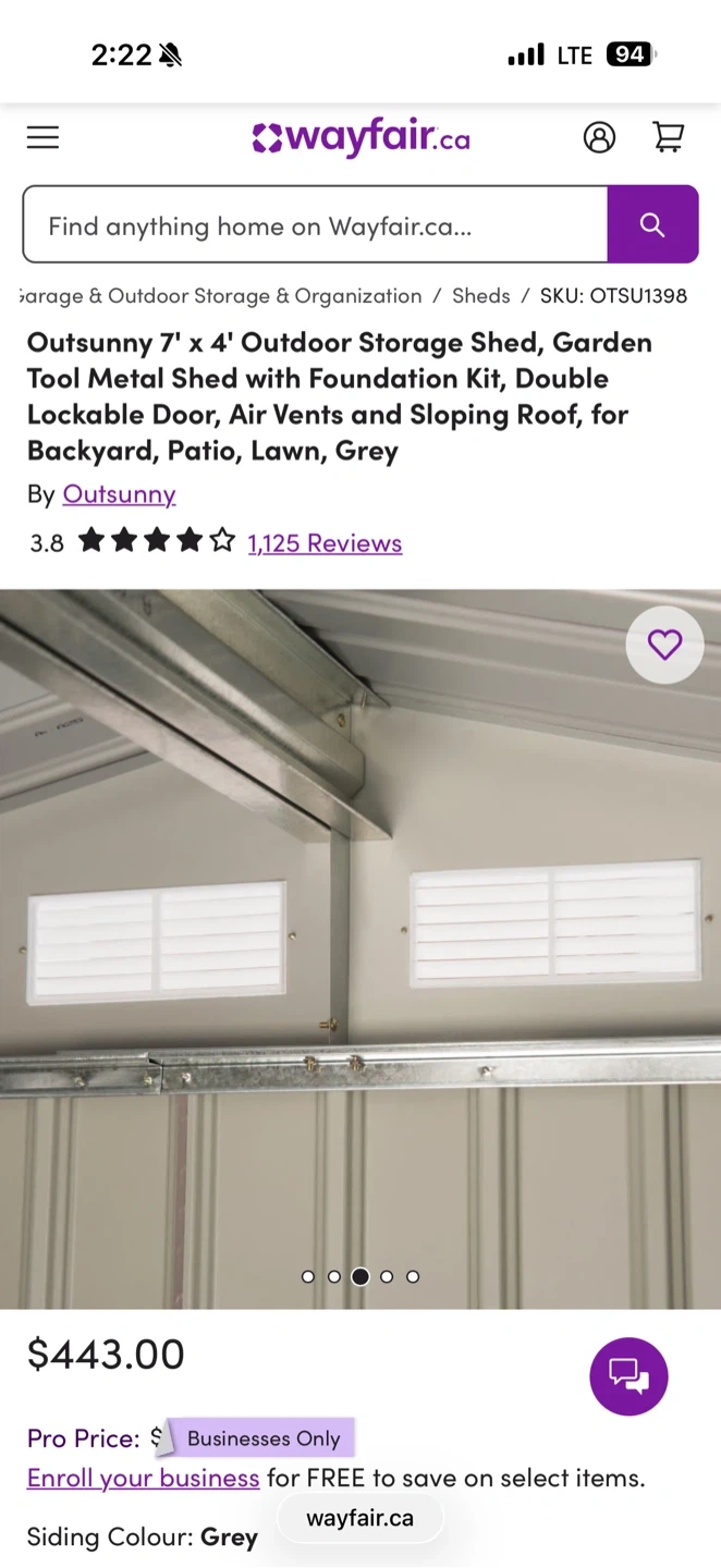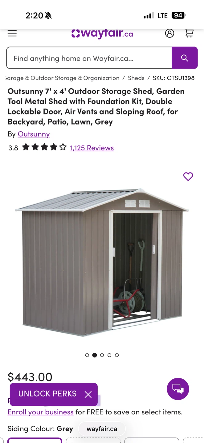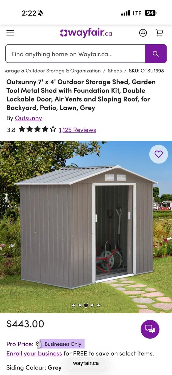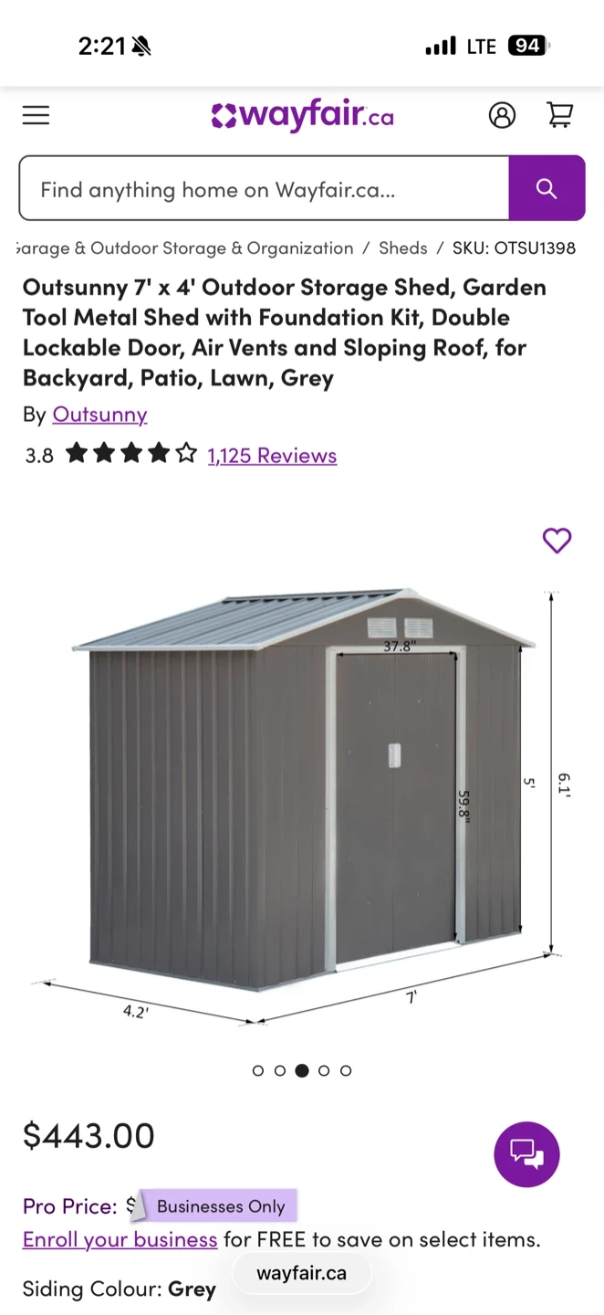 Looking to add some extra storage to your backyard? This Outsunny 7' x 4' outdoor storage shed could be exactly what you need! It's a garden tool metal shed with a foundation kit, double lockable door, and air vents. It's designed for your backyard, patio, lawn, and more! The siding colour is brown, making it a neutral fit for any outdoor space. Originally bought for $443.00 plus tax. I paid $ 580.00. Pick up Fichmond.