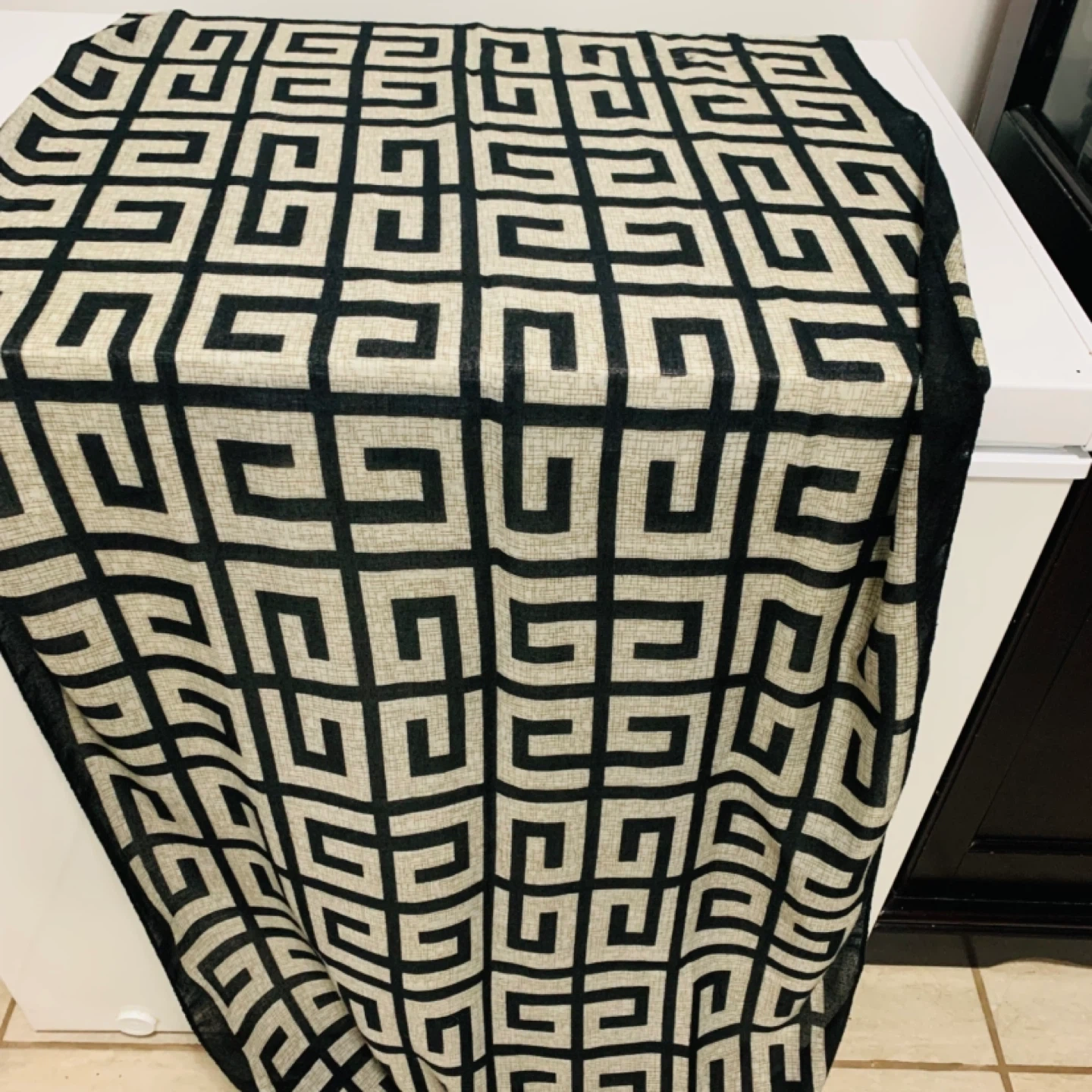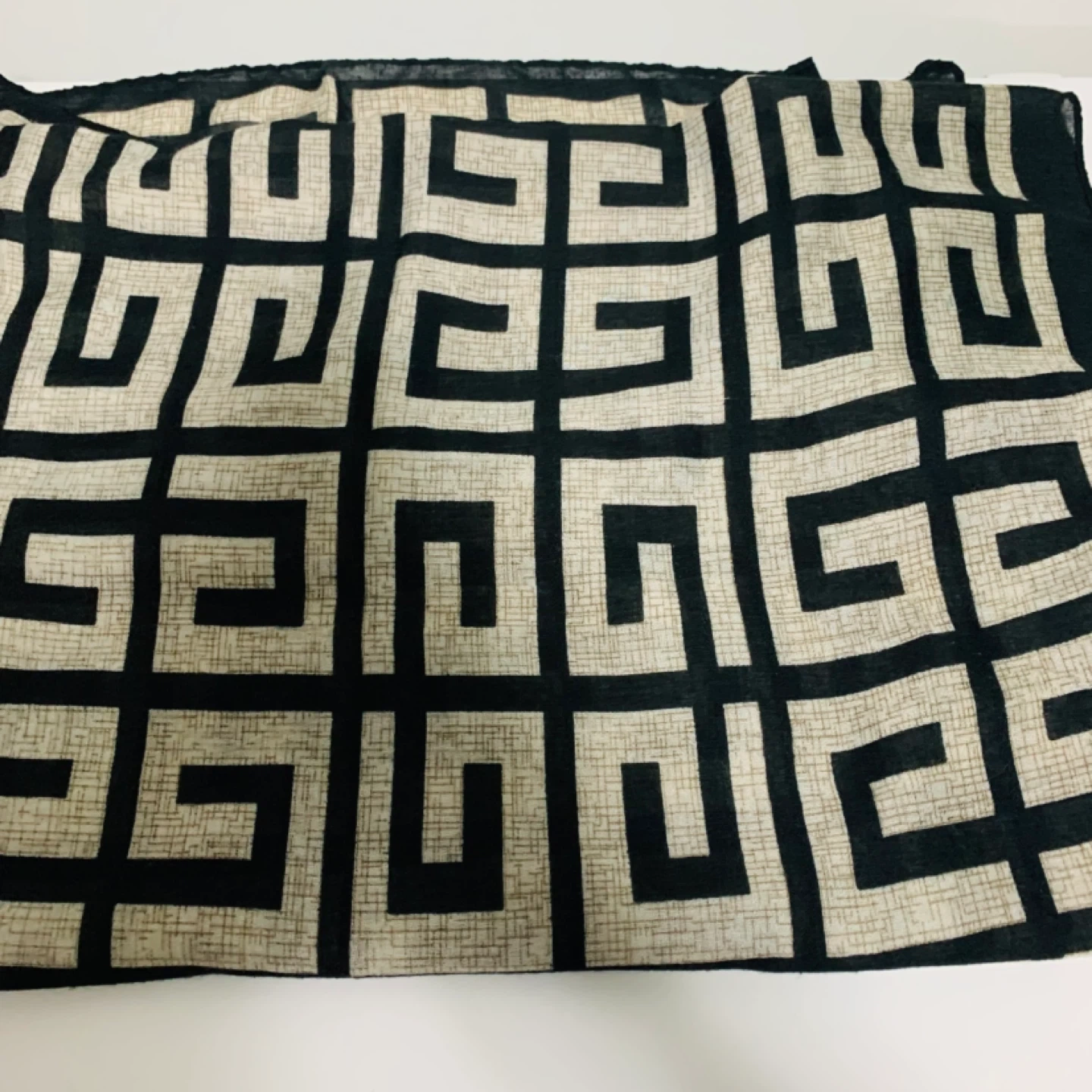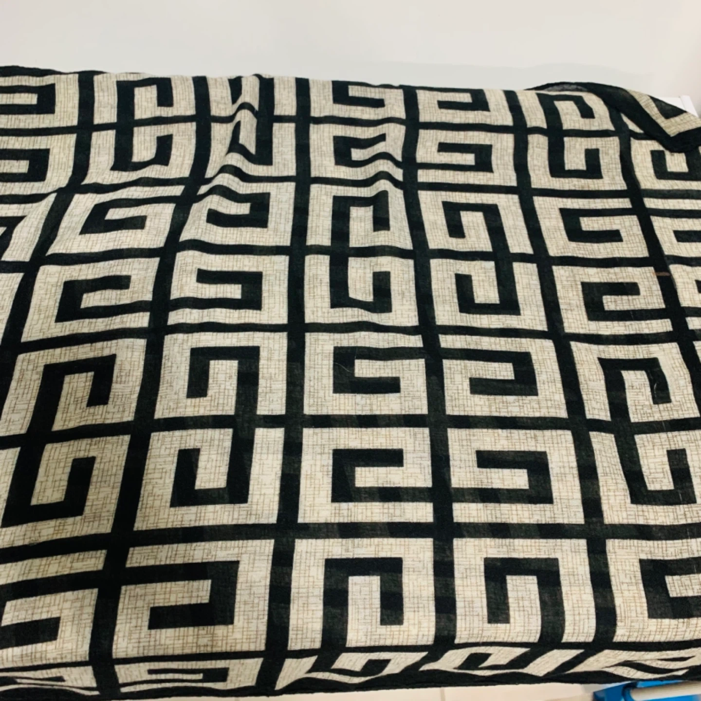 Selling a Givenchy scarf with a distinctive black and beige pattern. It's in great condition and would be a stylish addition to any outfit