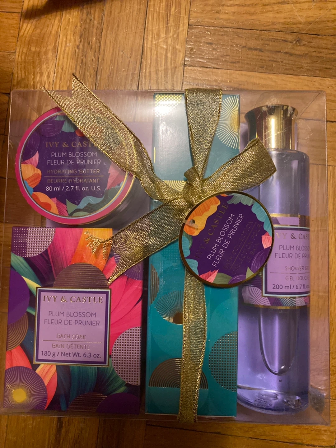 Selling a brand new Ivy & Castle Plum Blossom Fleur de Prunier bath and body gift set! It includes a hydrating butter (80 ml / 2.7 fl oz), bath soak (180 g / Net Wt. 6.3 oz), and shower gel (200 ml / 6.7 fl oz). Perfect as a gift or for pampering yourself