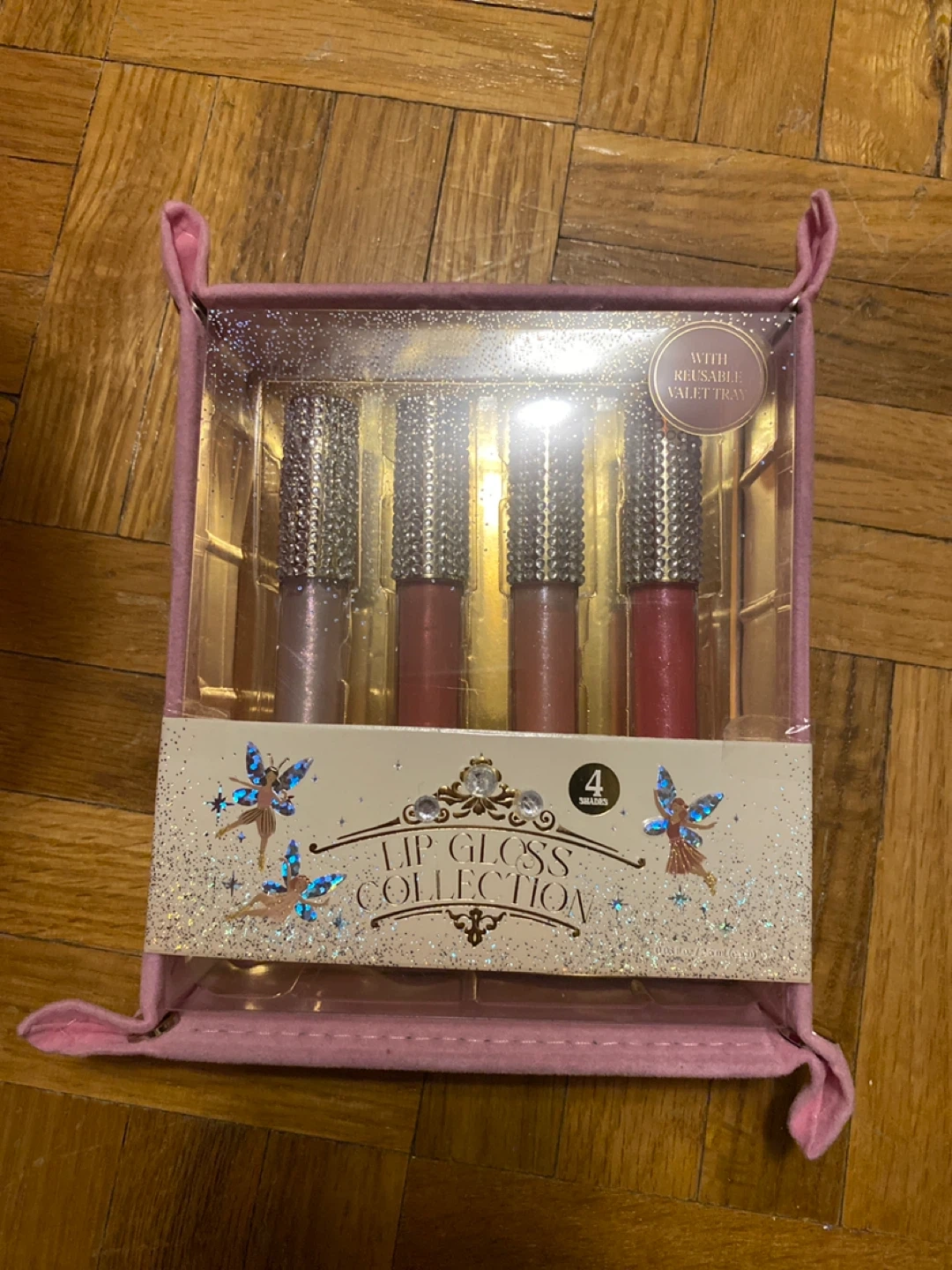Selling a lip gloss collection with 4 shades and a reusable valet tray. It's a great set to add some sparkle to your makeup routine!