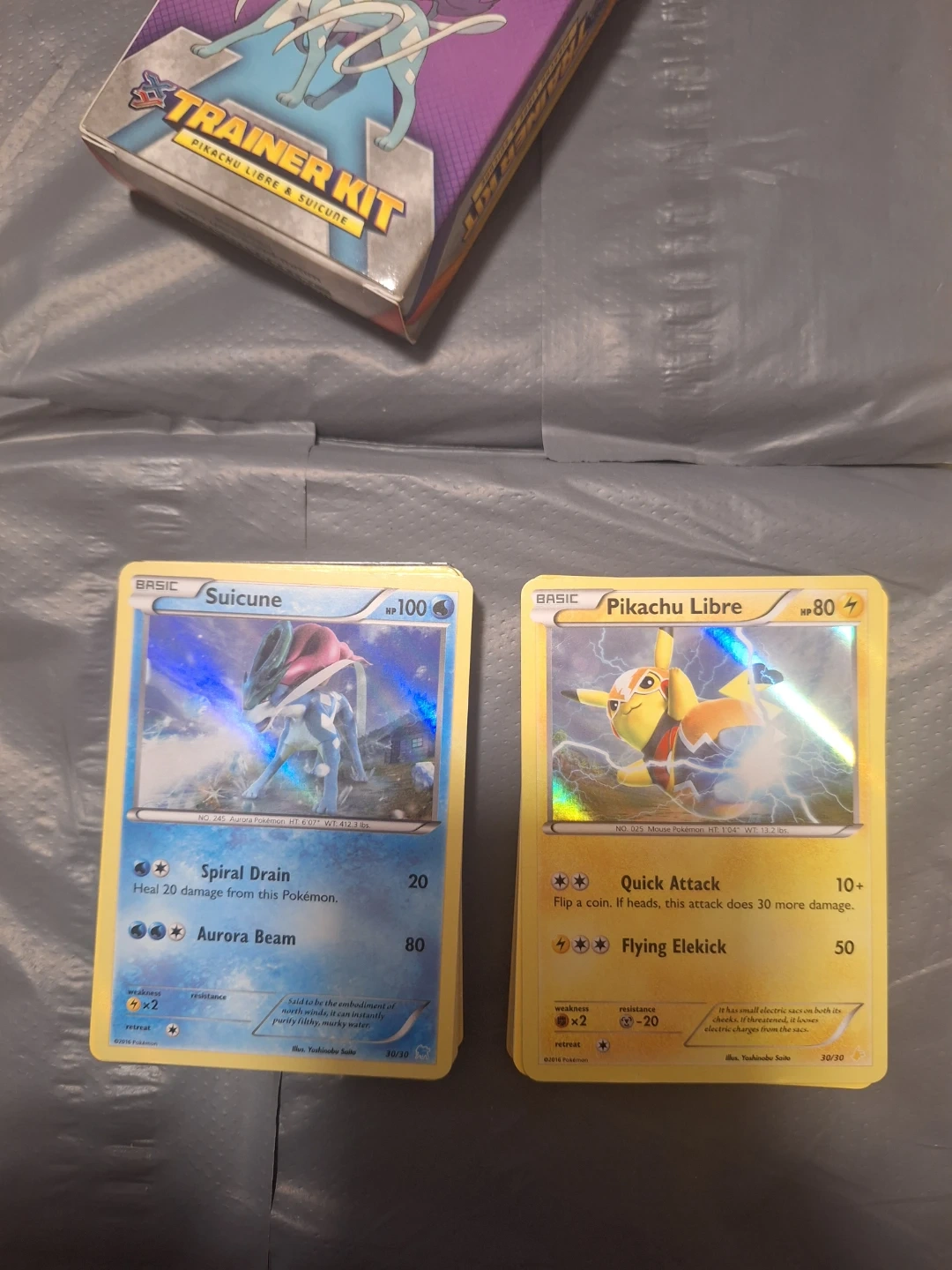 Selling a Pokémon Trainer Kit featuring Pikachu Libre and Suicune! Comes with full decks and the holo cards shown in the pictures.