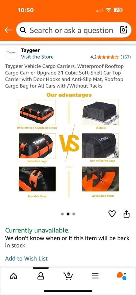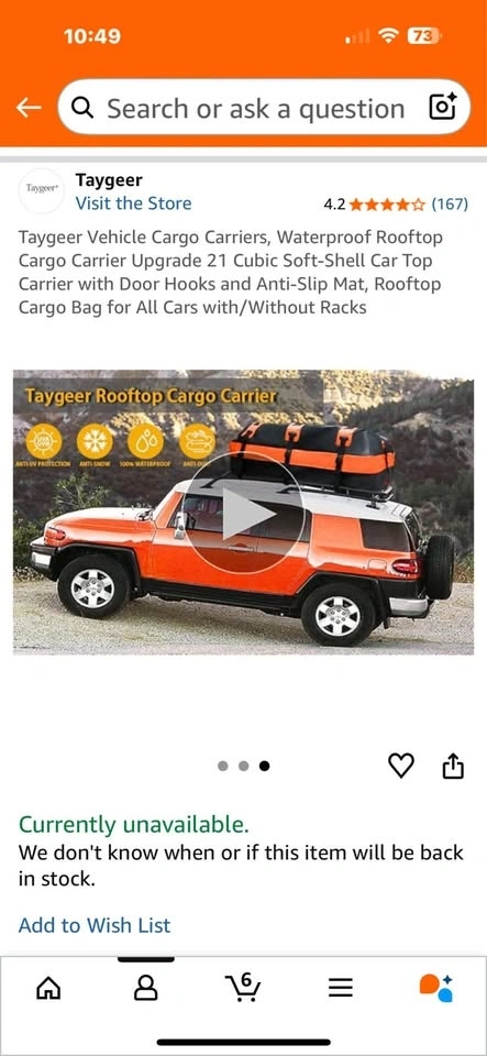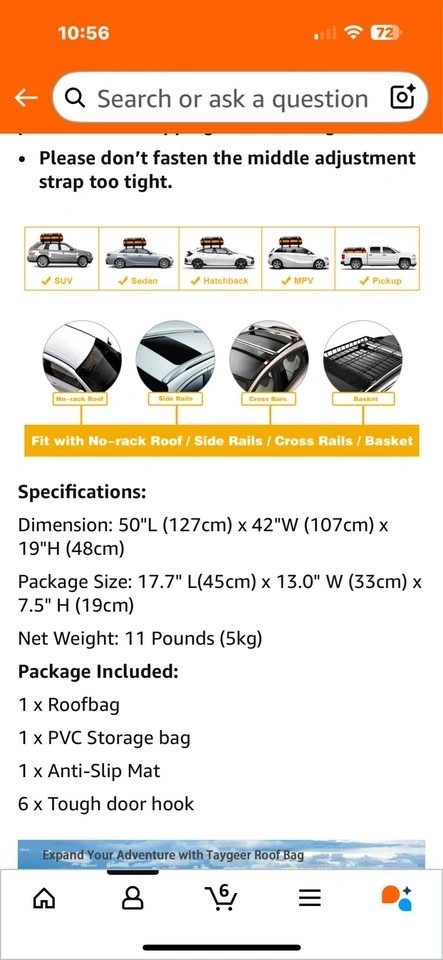 Used once and not needed. We have this amazing easily stored roof carrier. It is very waterproof and extremely easy to strap down. Maybe you don’t have room to store a hard carrier or just don’t want to use up valuable space. This is an excellent option to use a box and then store it away until your next adventure. Just cleaning up the garage and selling things we don’t need anymore.