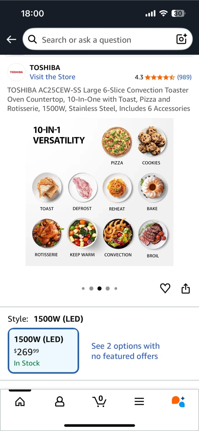 Toshiba Family Size Convection Toaster Oven in Like New Condition. 10-In-1 Function. MSRP: $269