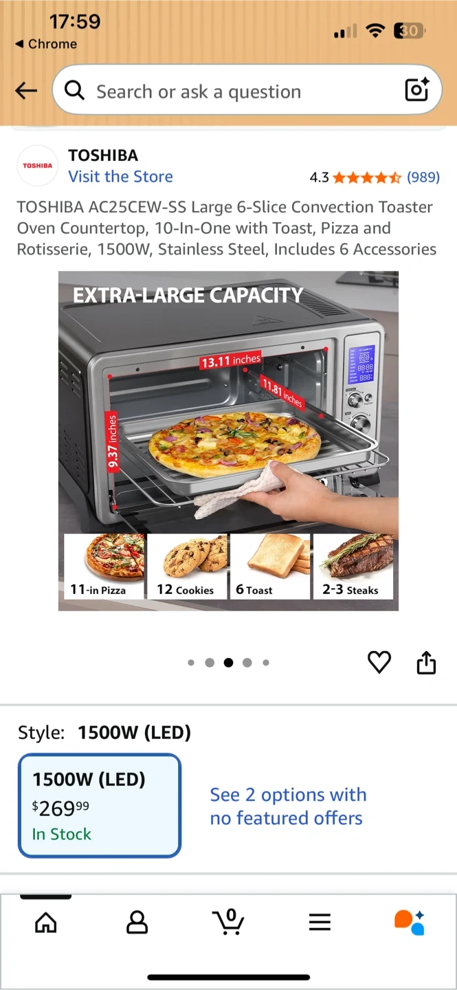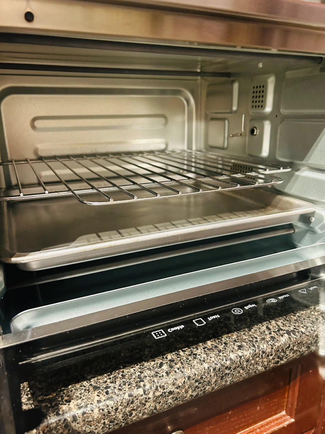 10-IN-ONE VERSATILITY: With 10 Functions, this All-in-One machine can take care of all your cooking needs. 10 Functions include Toast, Bake, Broil, Pizza, Cookies, Defrost, Reheat, Rotisserie, Keep Warm, and Convection.