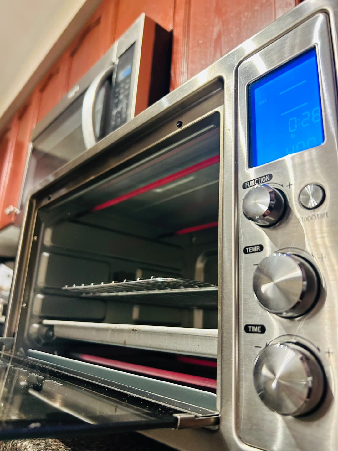 POWERFUL COOKING & ADJUSTABLE TEMPERATURE CONTROL: Our TOSHIBA Countertop Toaster Oven allows for a faster and even baking experience with its 1500W powerful output. It maintains a consistent temperature for up to two hours at a range between 150°F–450°F.