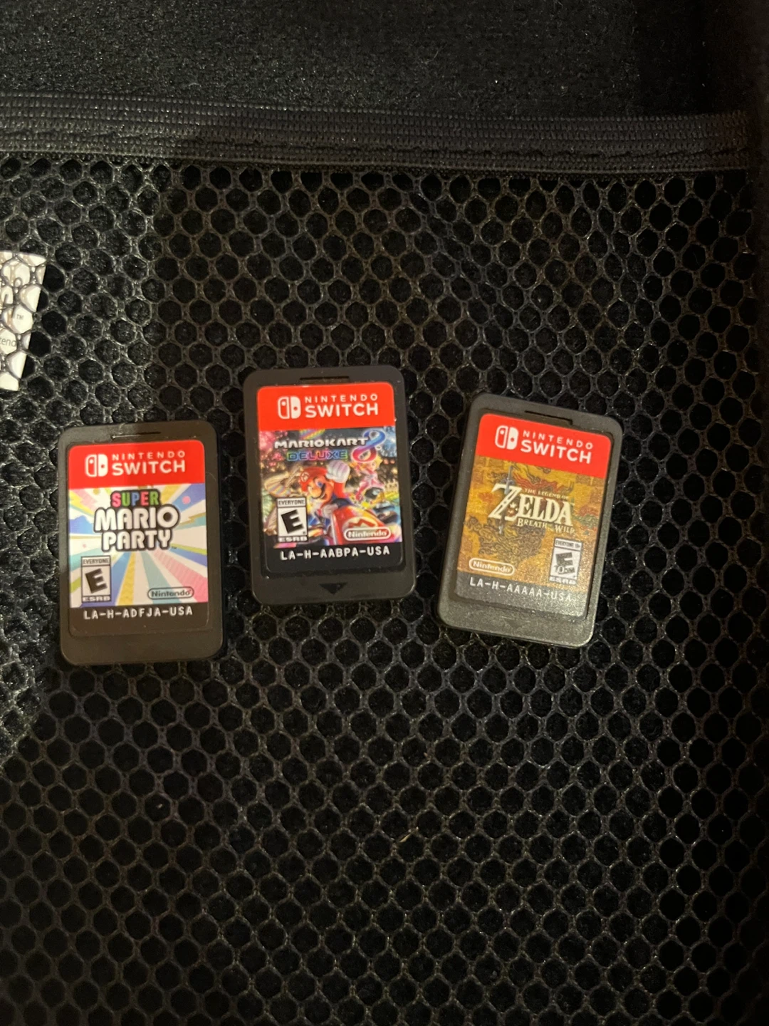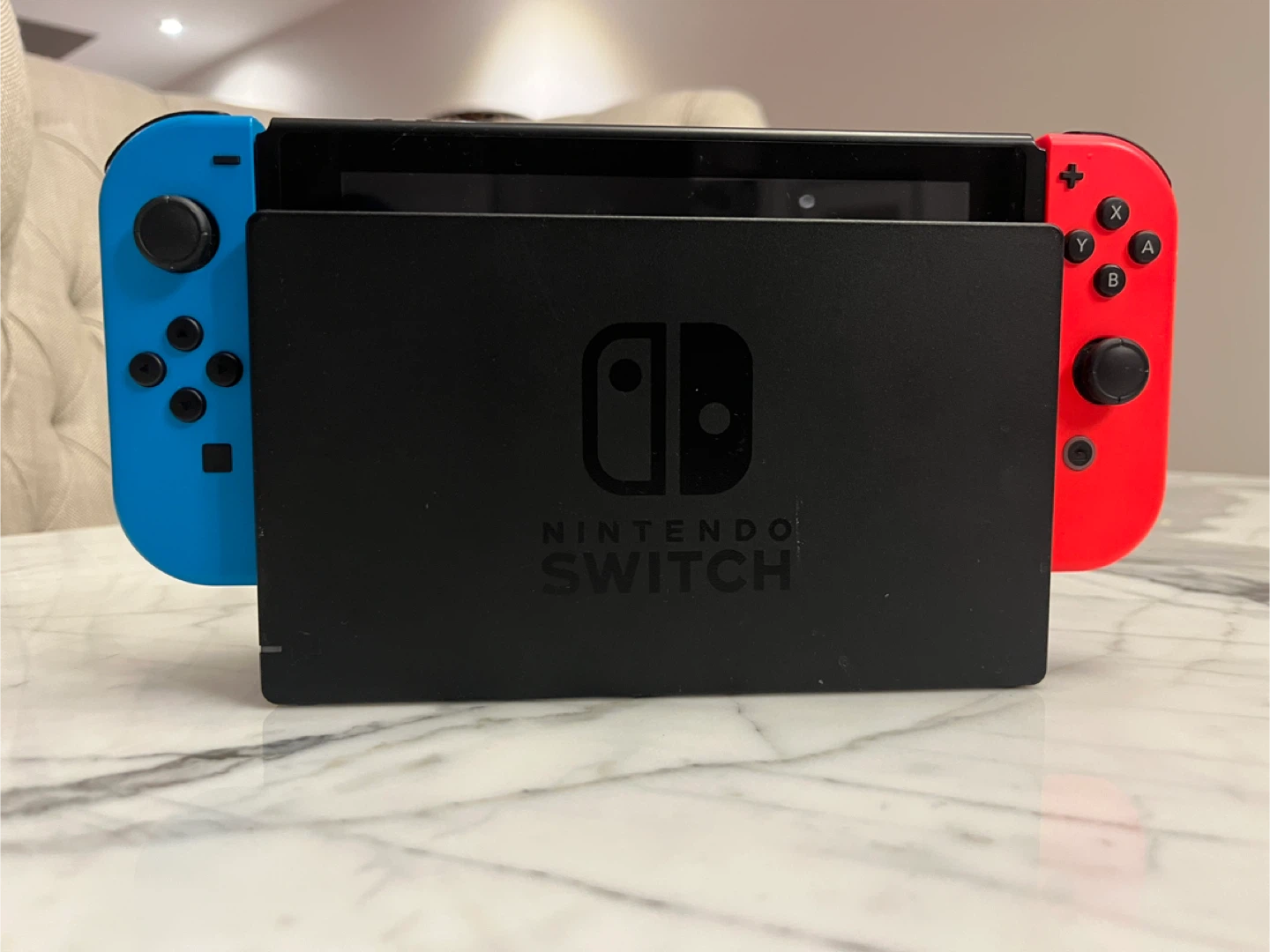 Selling a Nintendo Switch console with red and blue joy-cons! Included are the dock, three games (Super Mario Party, Mario Kart, and Zelda), and a Mario-themed carrying case. Perfect for gaming on the go or at home!