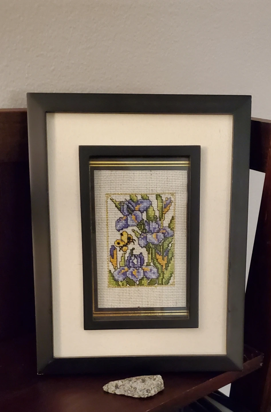 Framed Floral Irises Cross-Stitch Art