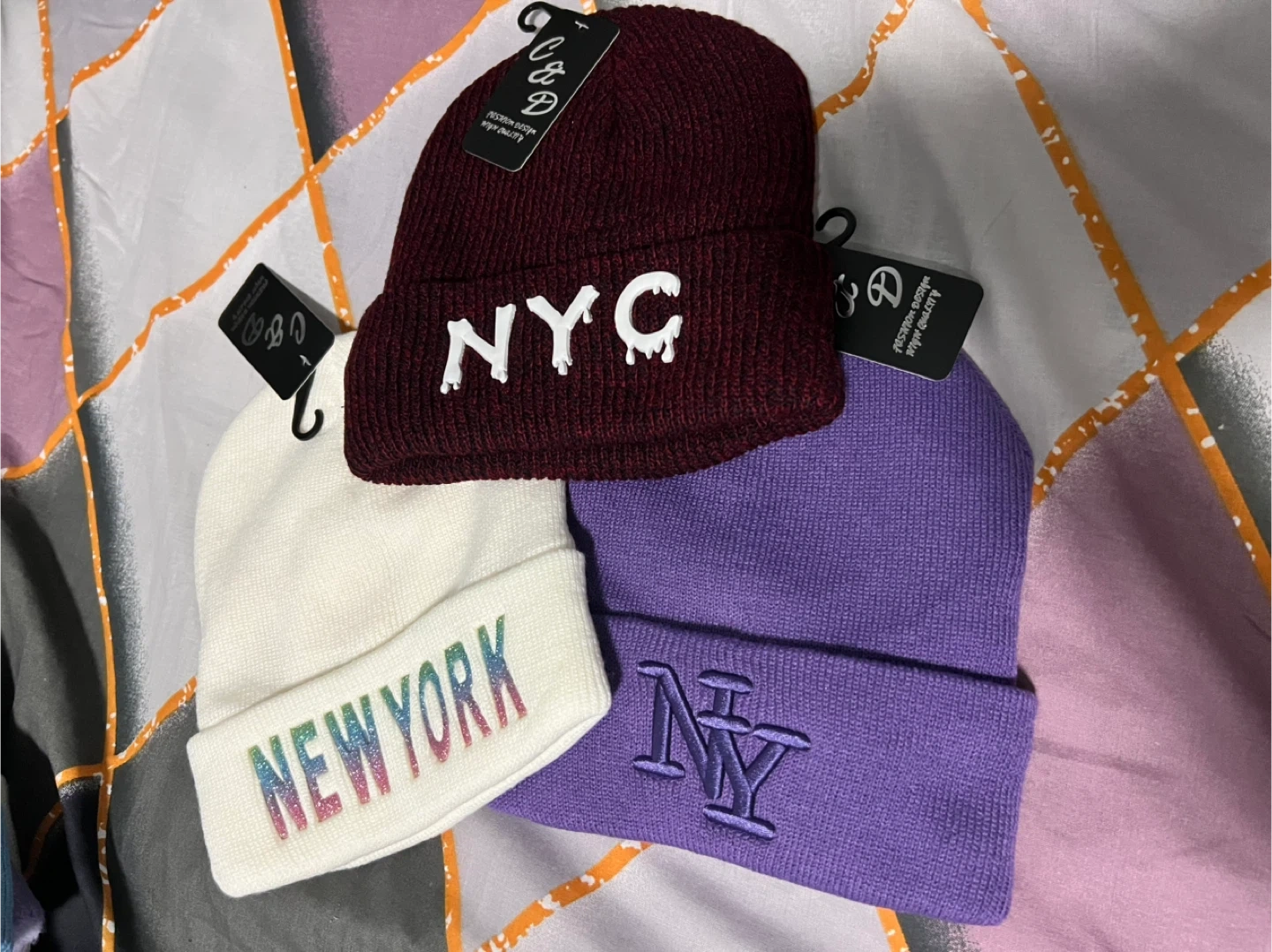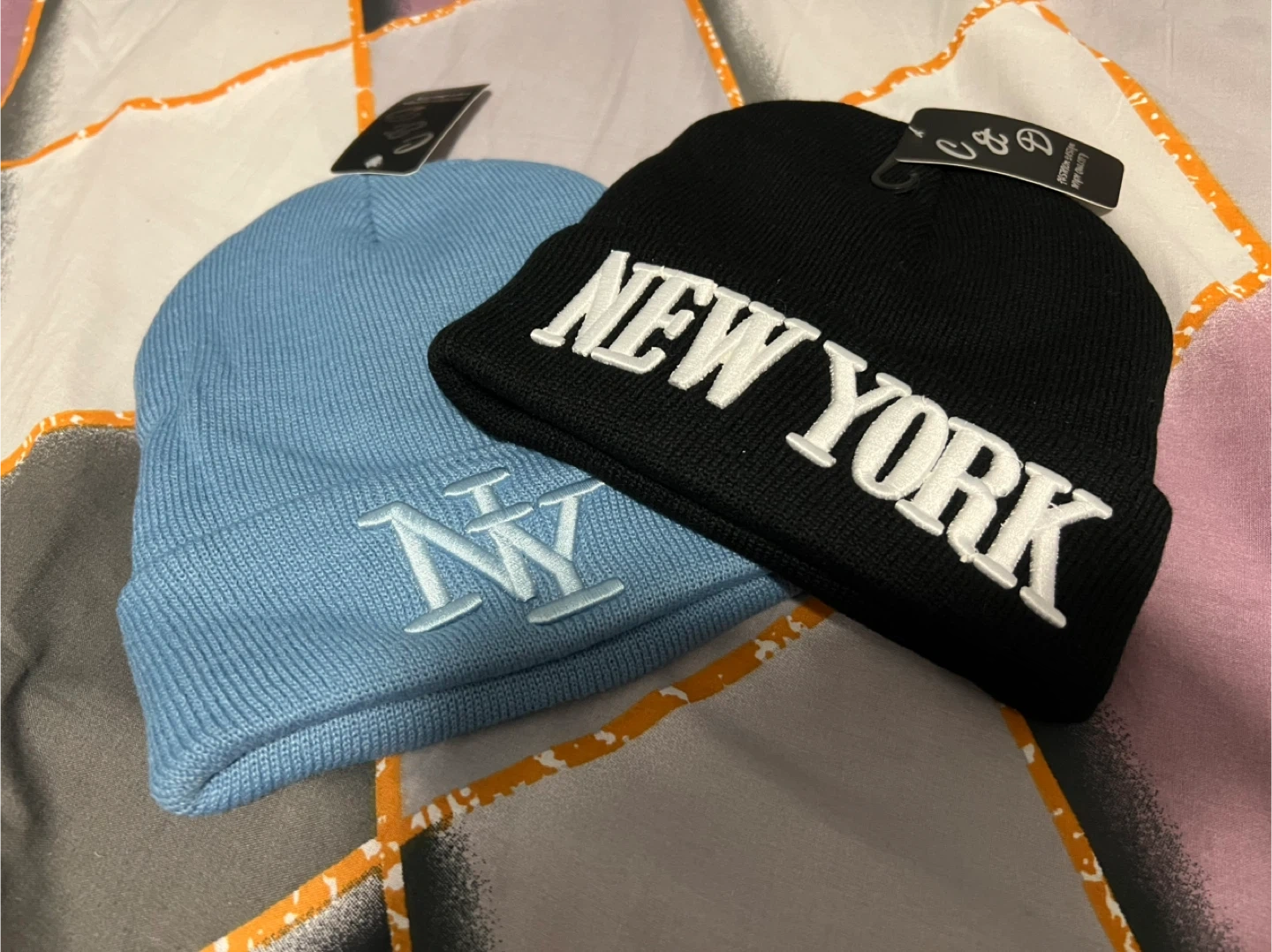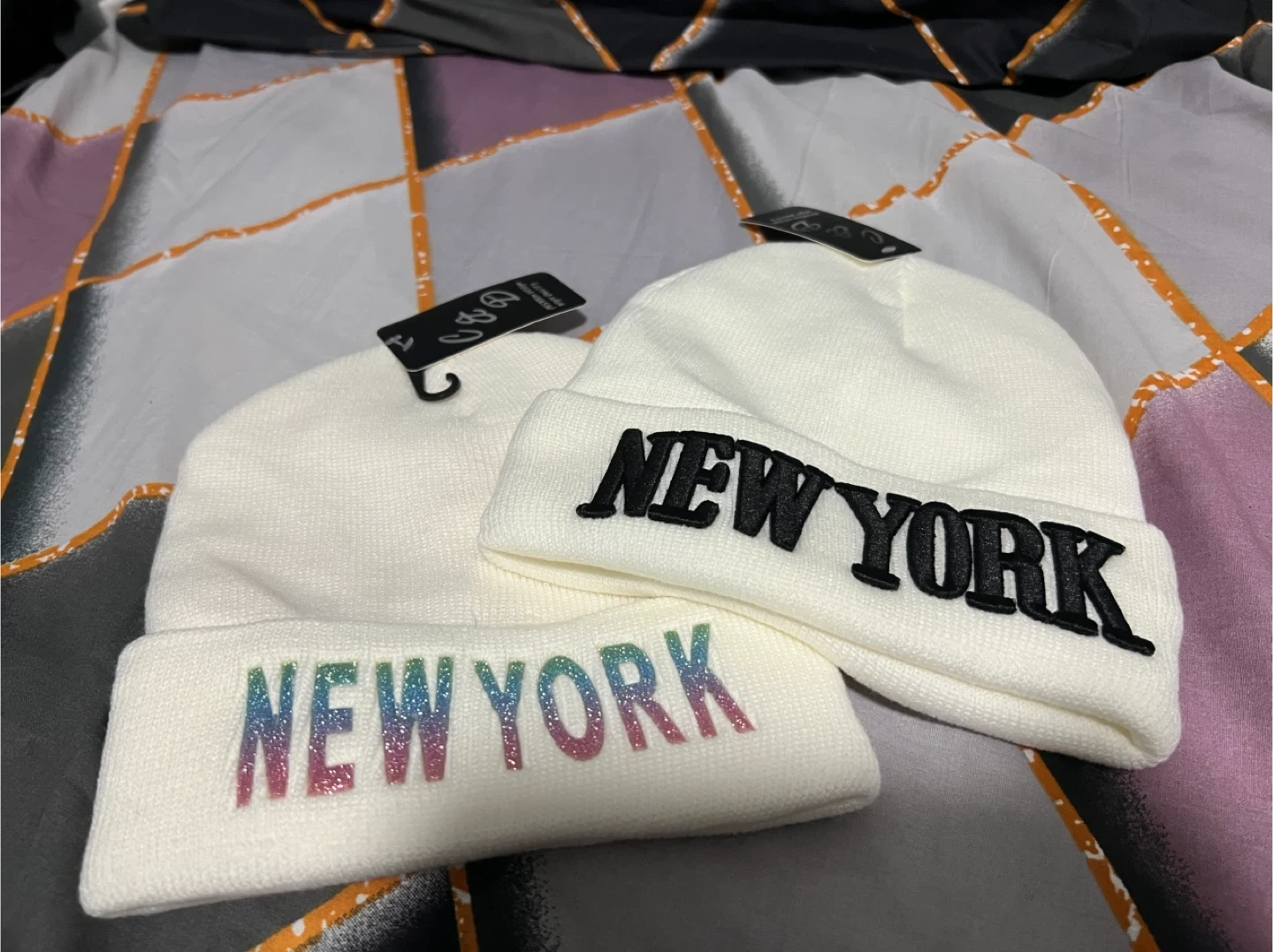 Check out these brand new beanies! They come in a variety of colors and designs, including 'NY', 'NYC', and 'New York'. They're perfect for keeping your head warm and stylish this winter.