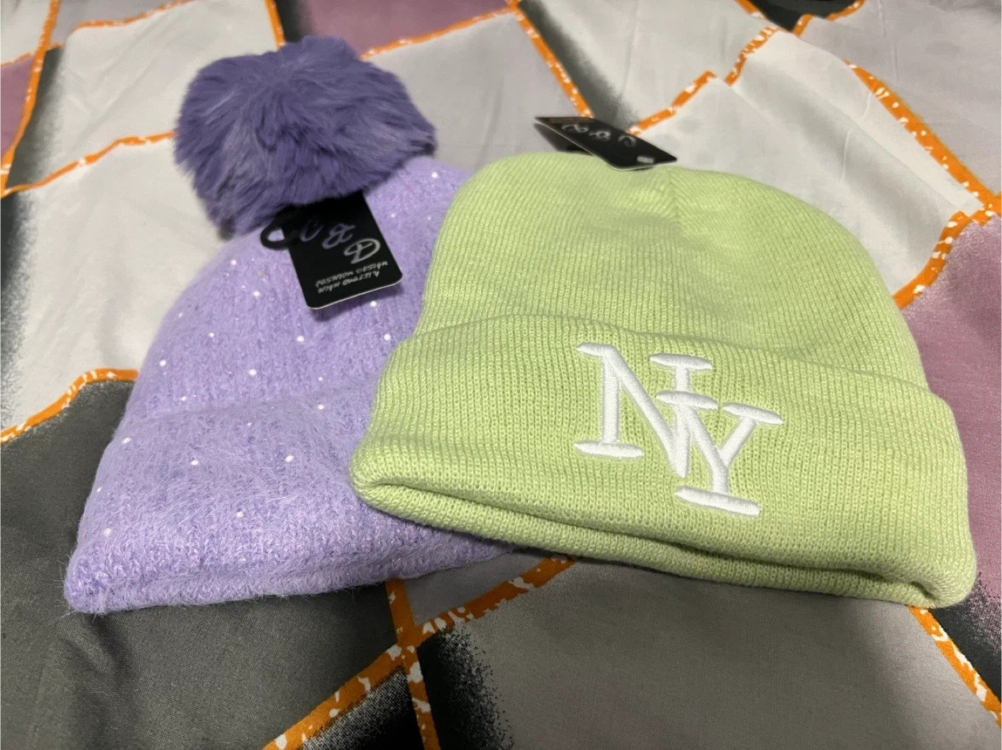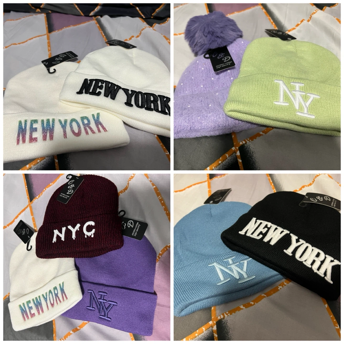 ¡Mira estos nuevos gorros! Vienen en una variedad de colores y diseños, incluyendo "NY", "NYC" y "New York". Son perfectos para mantener la cabeza abrigada y con estilo este invierno.