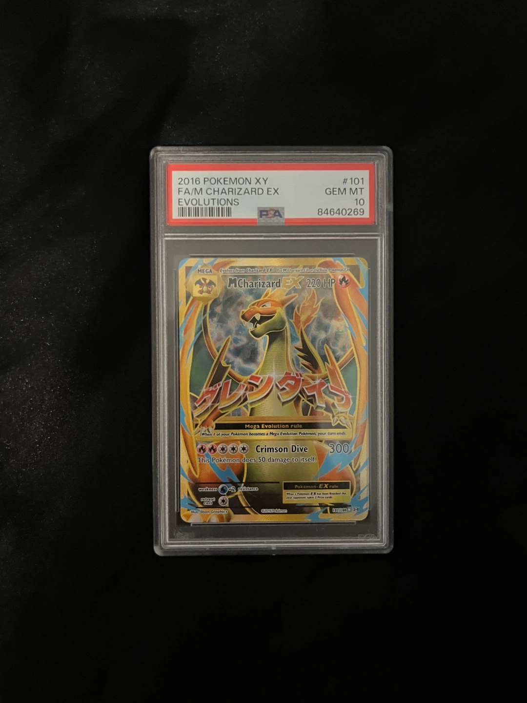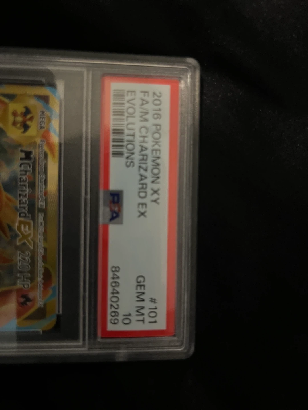 Selling a 2016 Pokemon XY F/A/M Charizard EX Evolutions card. It's graded GEM MT 10 by PSA, with the number 84640269