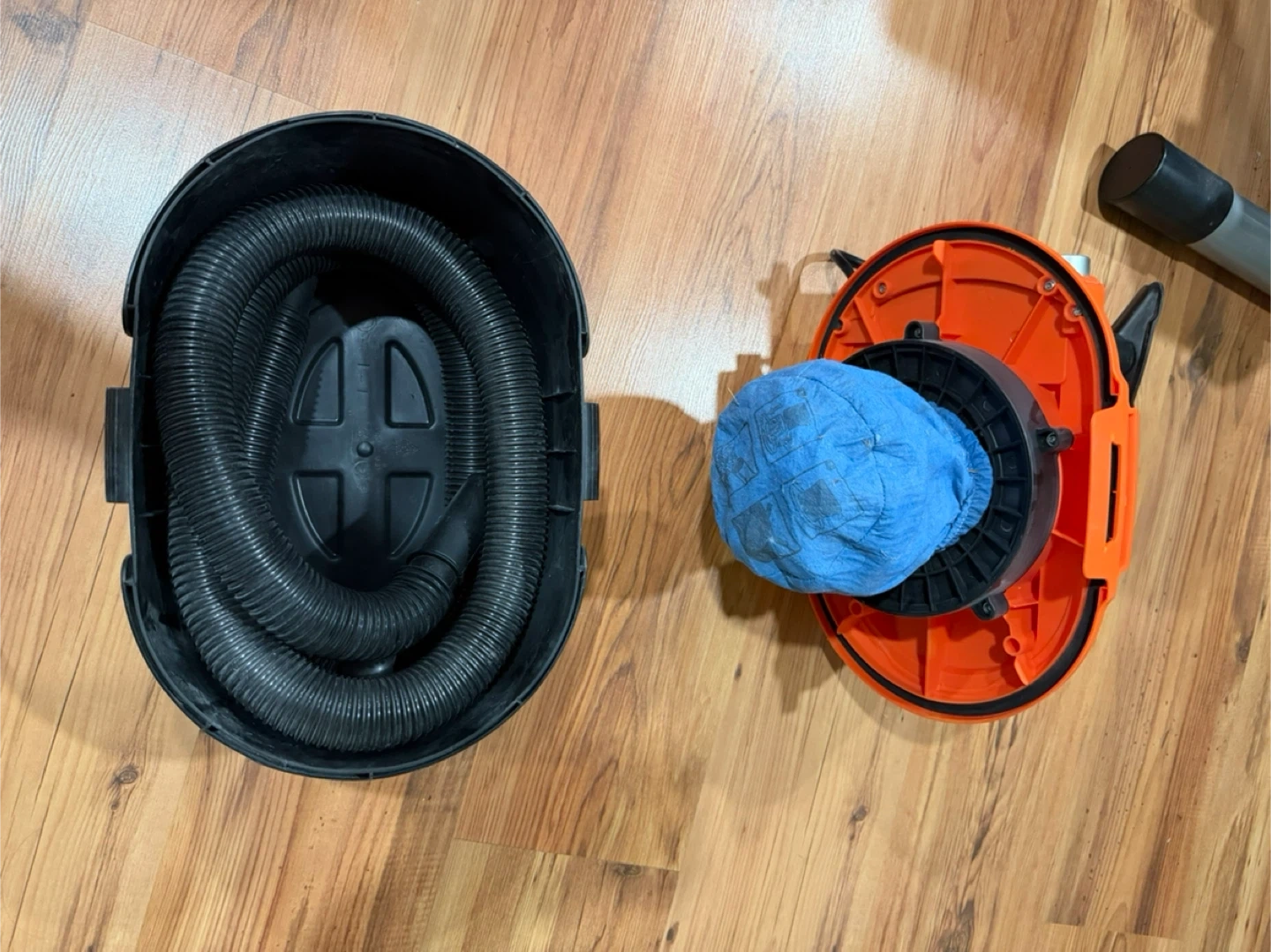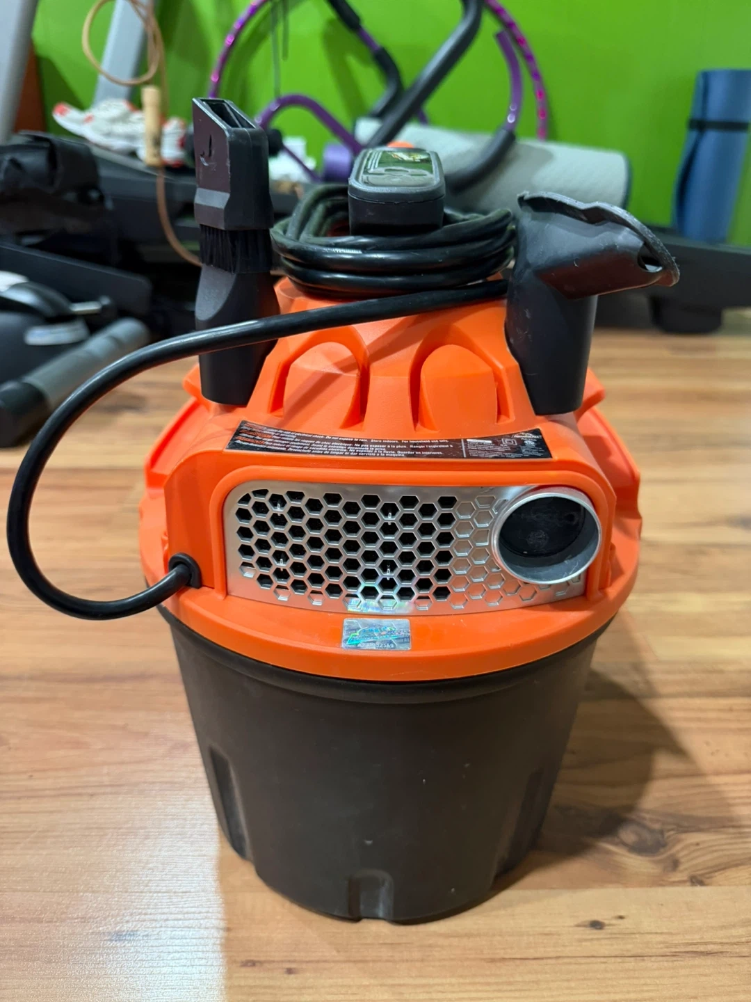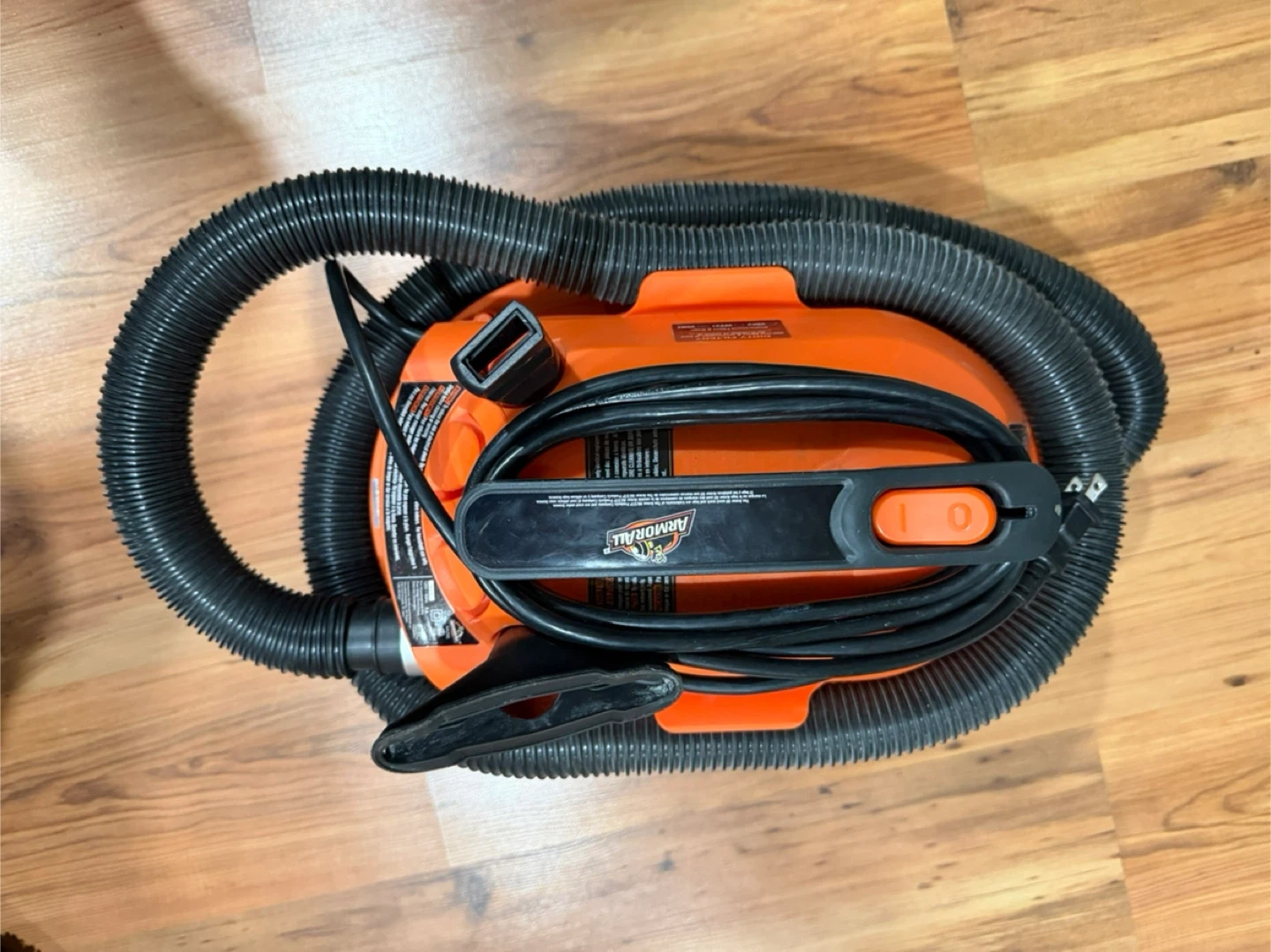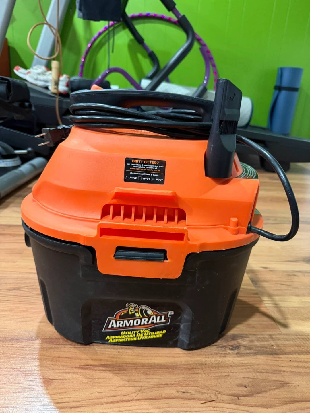 Selling an Armor All utility wet/dry vac. It has a 2.0 HP peak maximum. It comes with a hose and a blue filter bag.