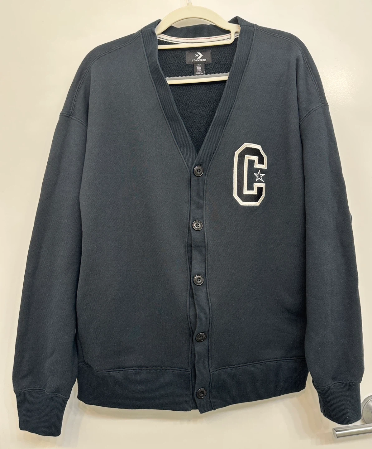 Buy & SellConverse Cardigan - Black Cotton 100Converse Cardigan - Black Cotton 100$25It's made of 100% cotton and has been washed once for wearing, but it hasn't been worn since.ConditionLike newSizeMWHERE TO MEETCheck LocationView MapSELLERverifiedzzinnloveHudson Yards1000+128 reviews0 chats·0 favorites·4 viewsSEND CHAT TO SELLERHi zzinnlove! I’m interested in your listing.Hi zzinnlove! I’m interested in your listing.Get the Karrot app to chatSign In to chat