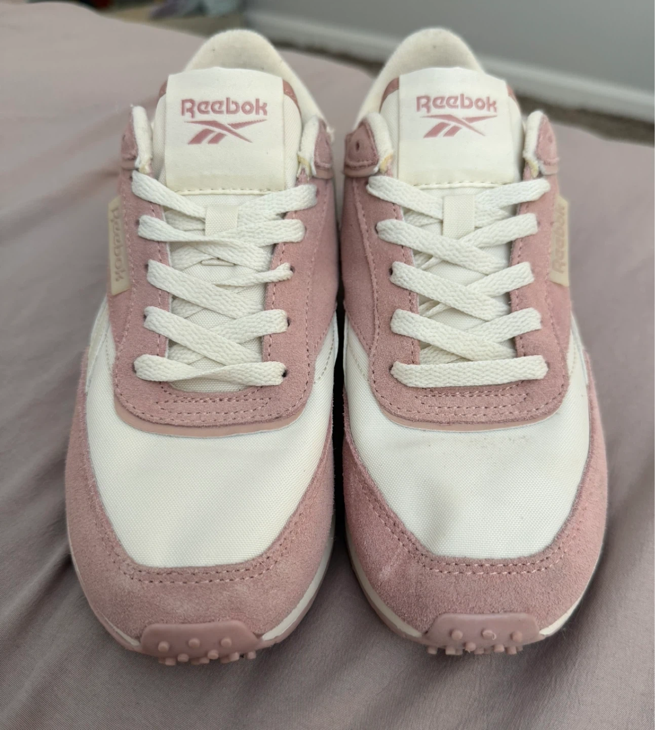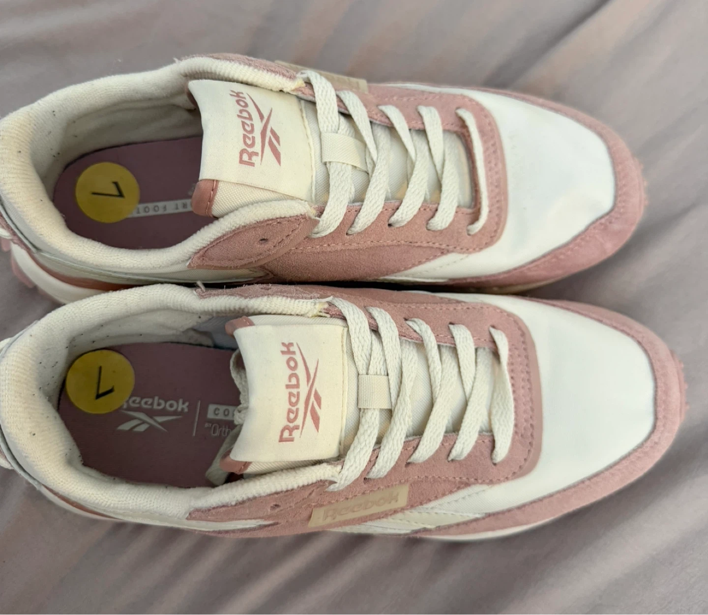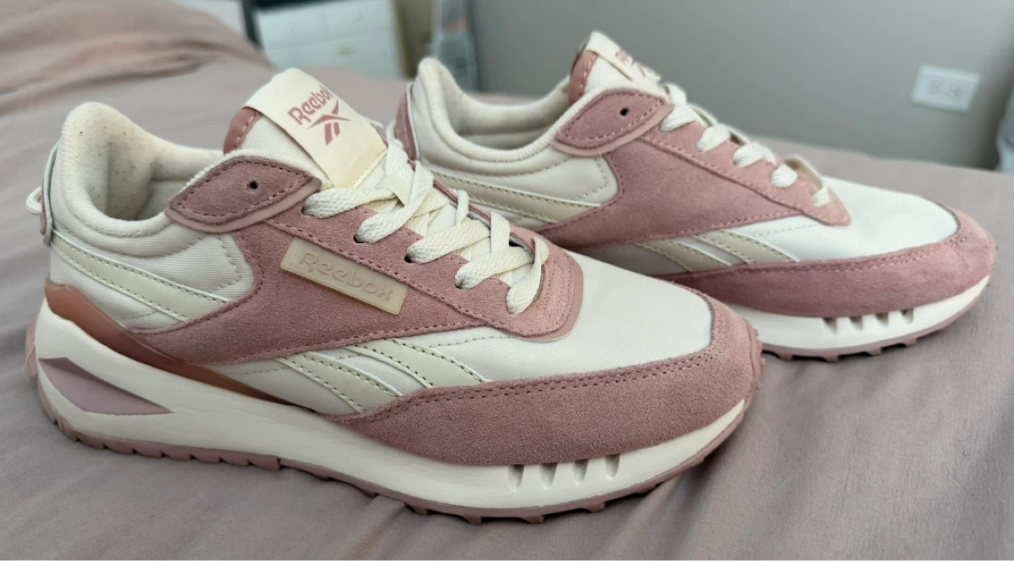 Selling a pair of Reebok sneakers in a lovely pink and white color combo! They're a size 7 and perfect for adding a touch of style to your casual outfits. Check out the photos for a closer look!