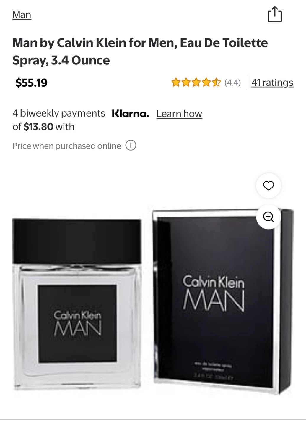 Selling a bottle of Calvin Klein MAN Eau De Toilette. It's a 3.4 ounce spray. Retails for $55.19.