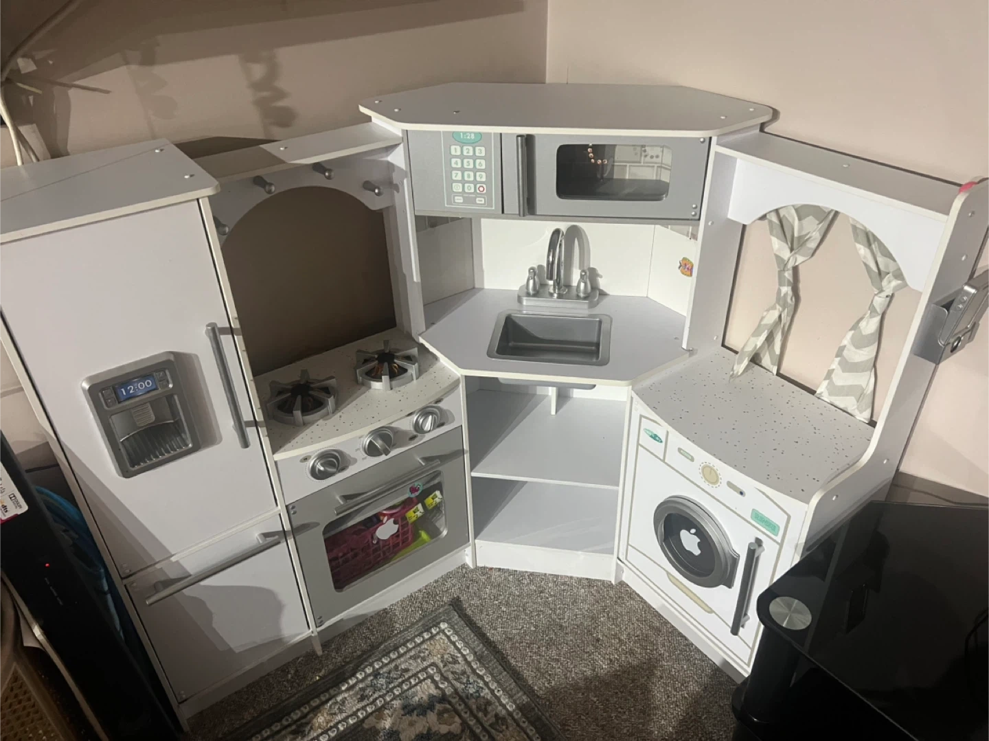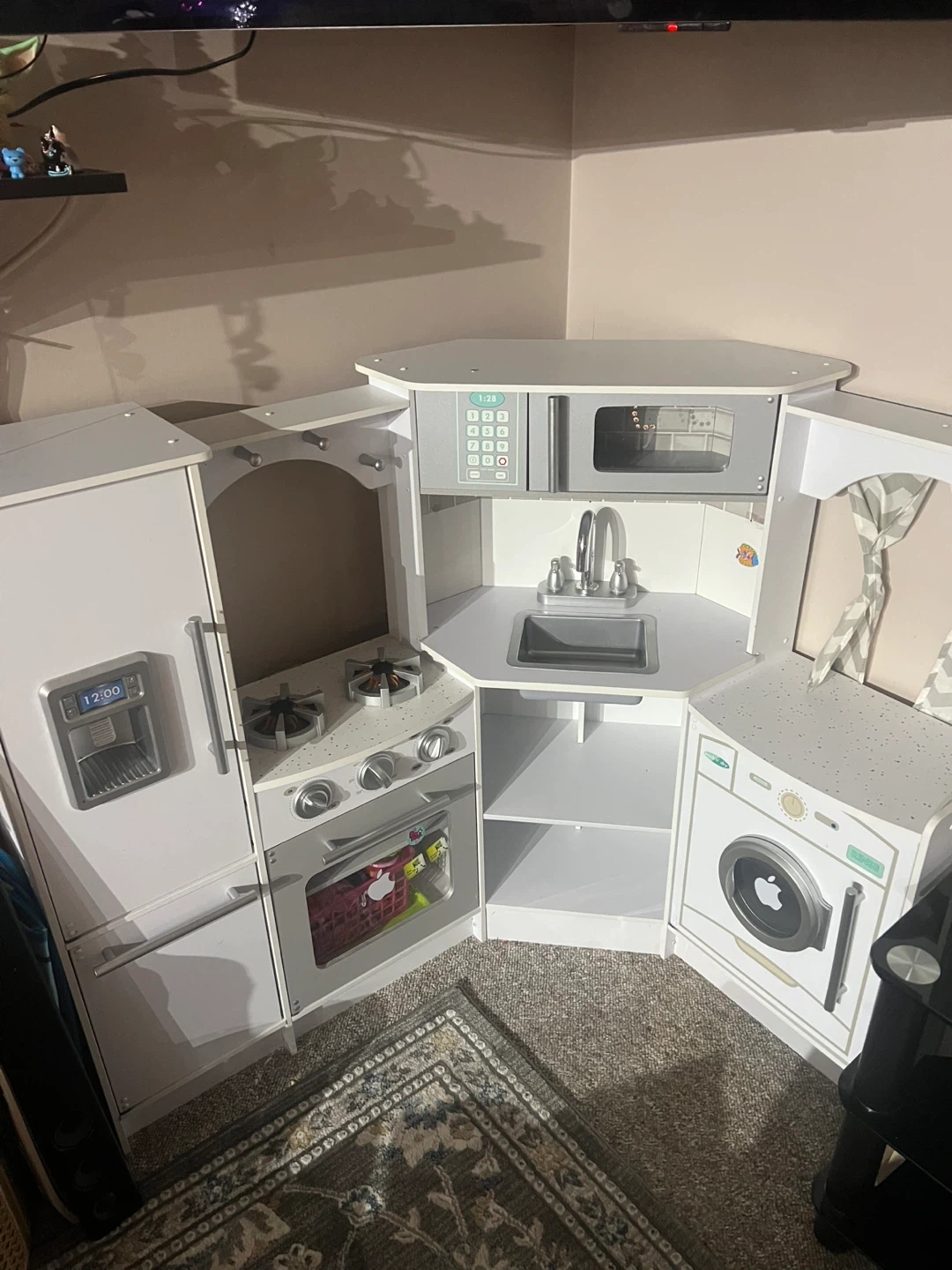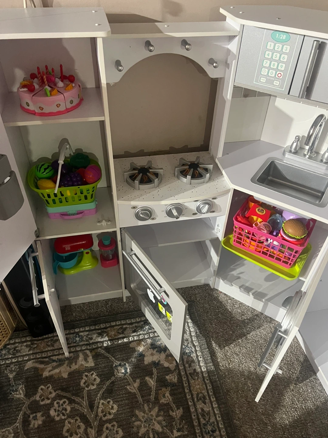 Selling a cute corner kitchen playset for kids! It's in great shape and ready for a new little chef to enjoy. LED burners, LED fridge button. Comes with accessories.Perfect for imaginative play and hours of fun
