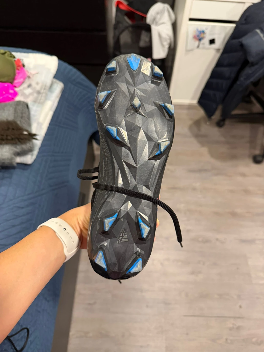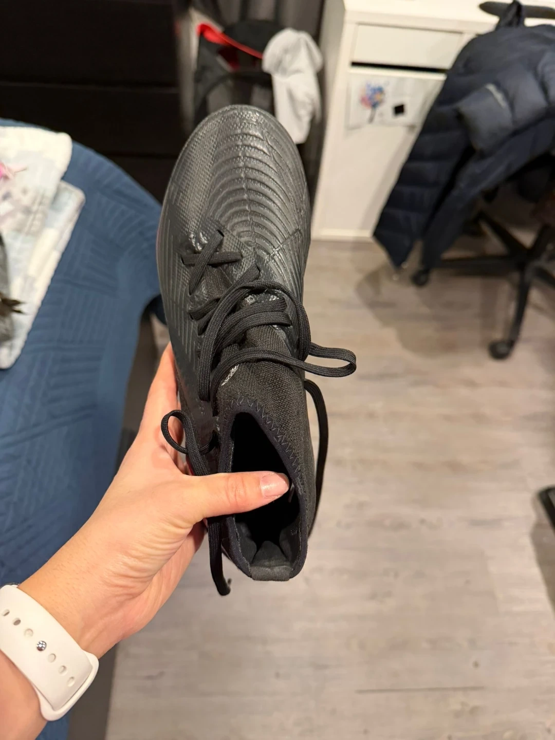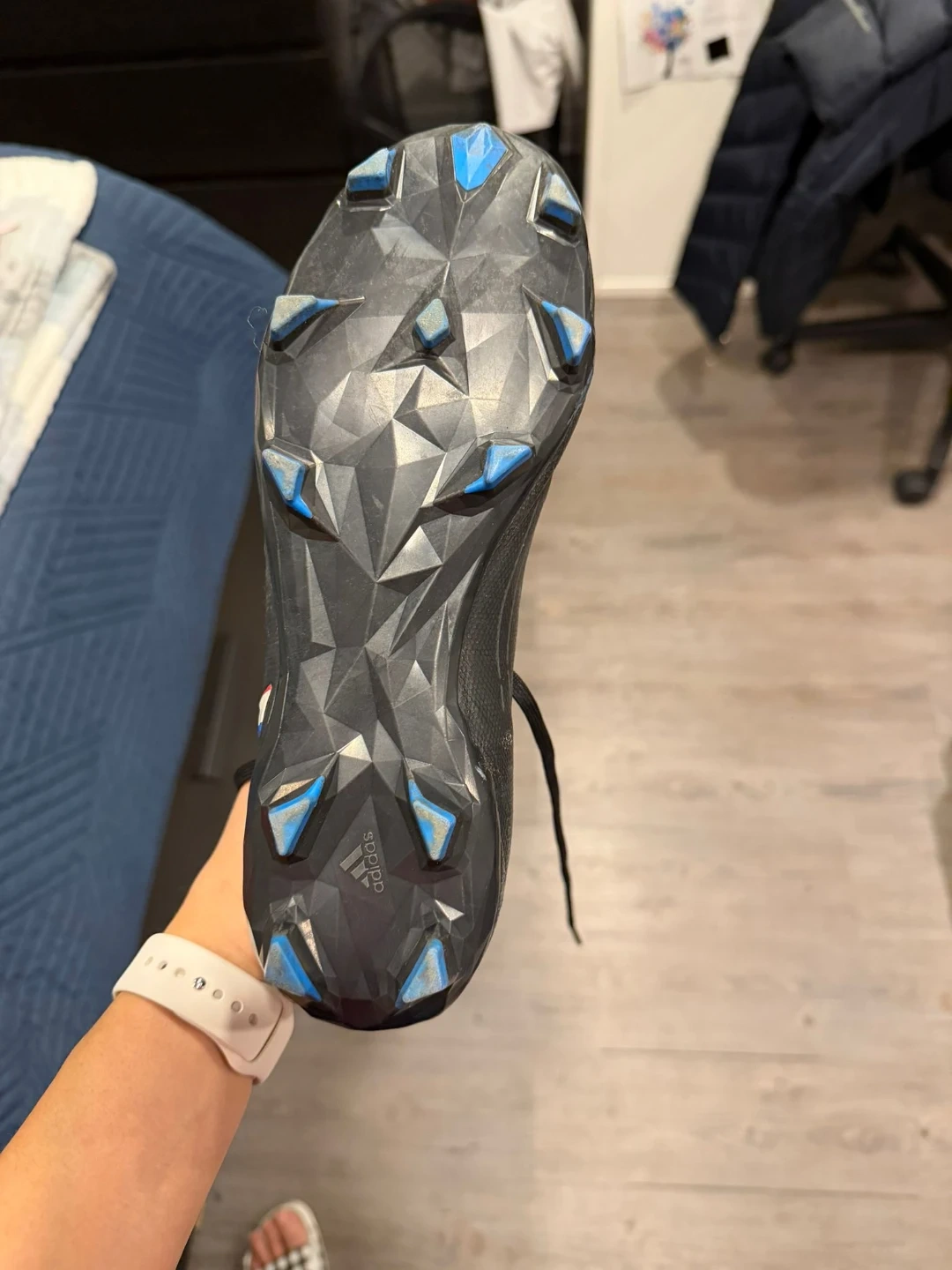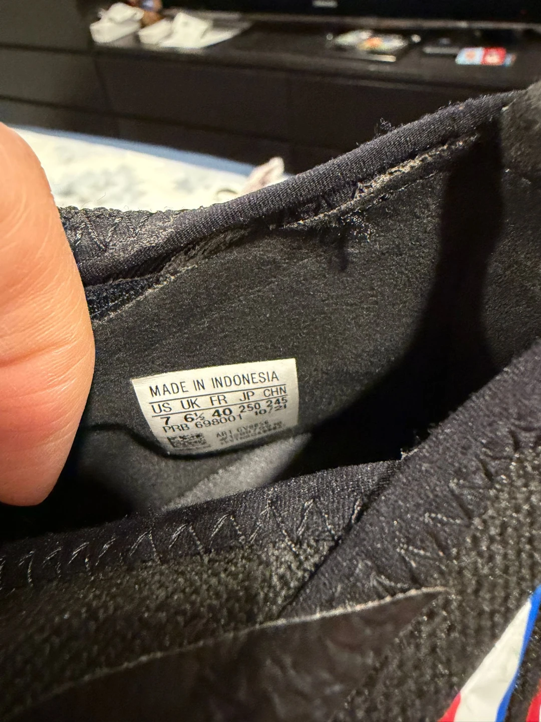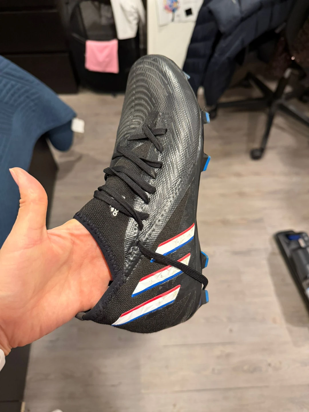 Selling a pair of Adidas Predator Edge.3 FG soccer cleats in US size 7. They're in great shape and ready for the field! The cleats have a sleek black design with red, white, and blue accents. Perfect for anyone looking for a quality pair of soccer shoes