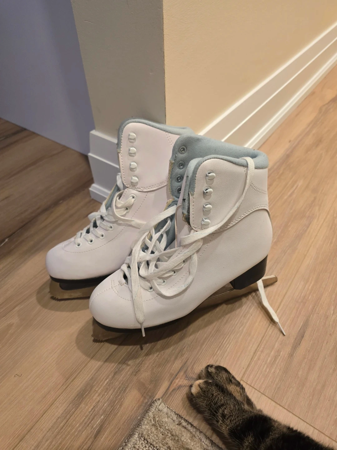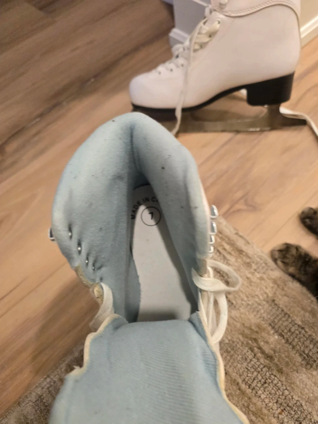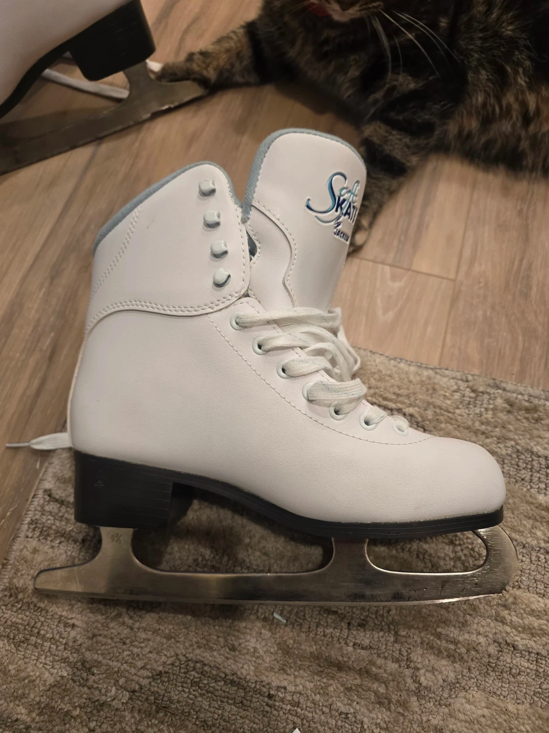 Selling a pair of Skyline ice skates in a women's size 7. They're white with a light blue interior. Perfect for hitting the ice rink this winter!