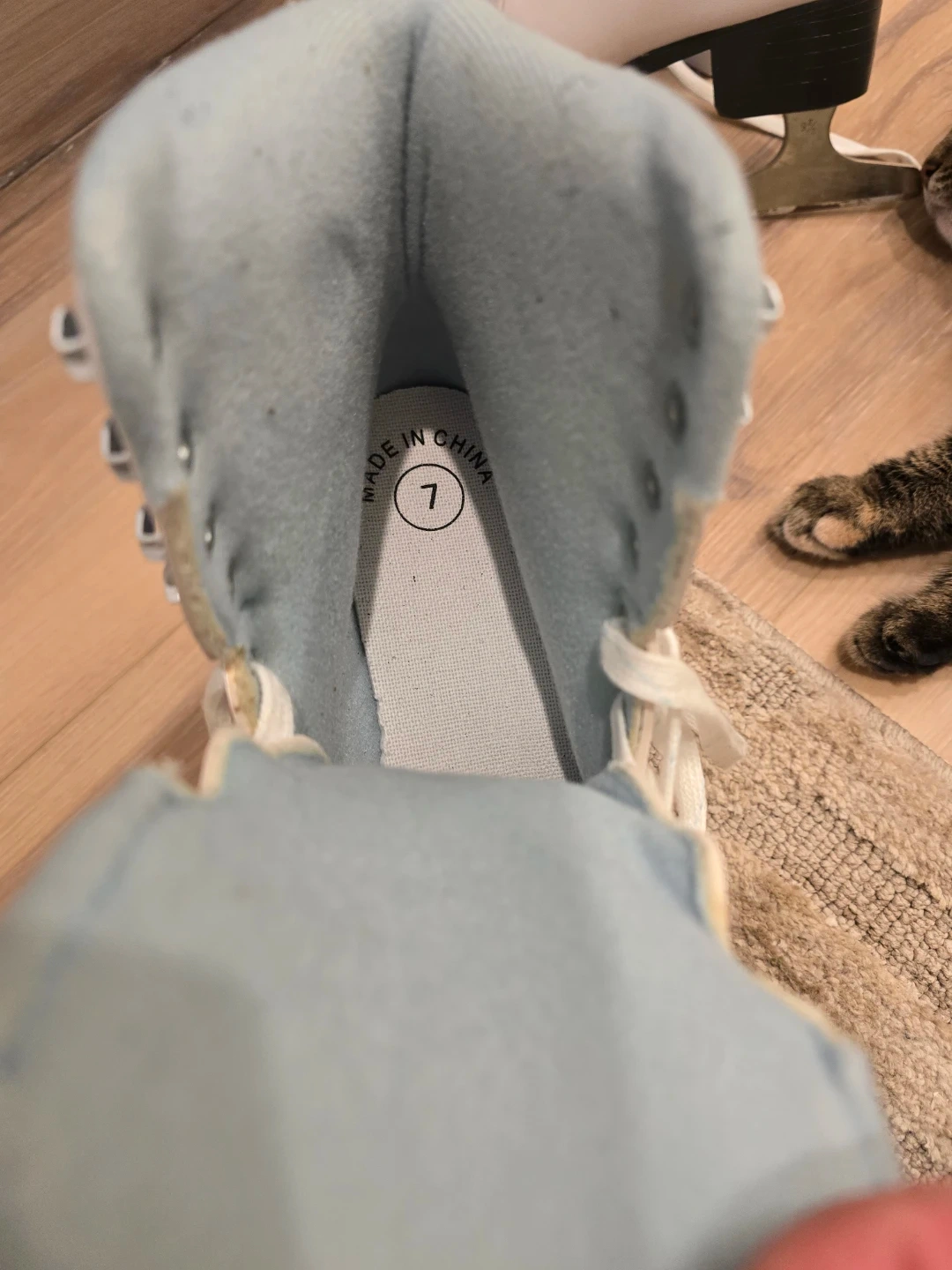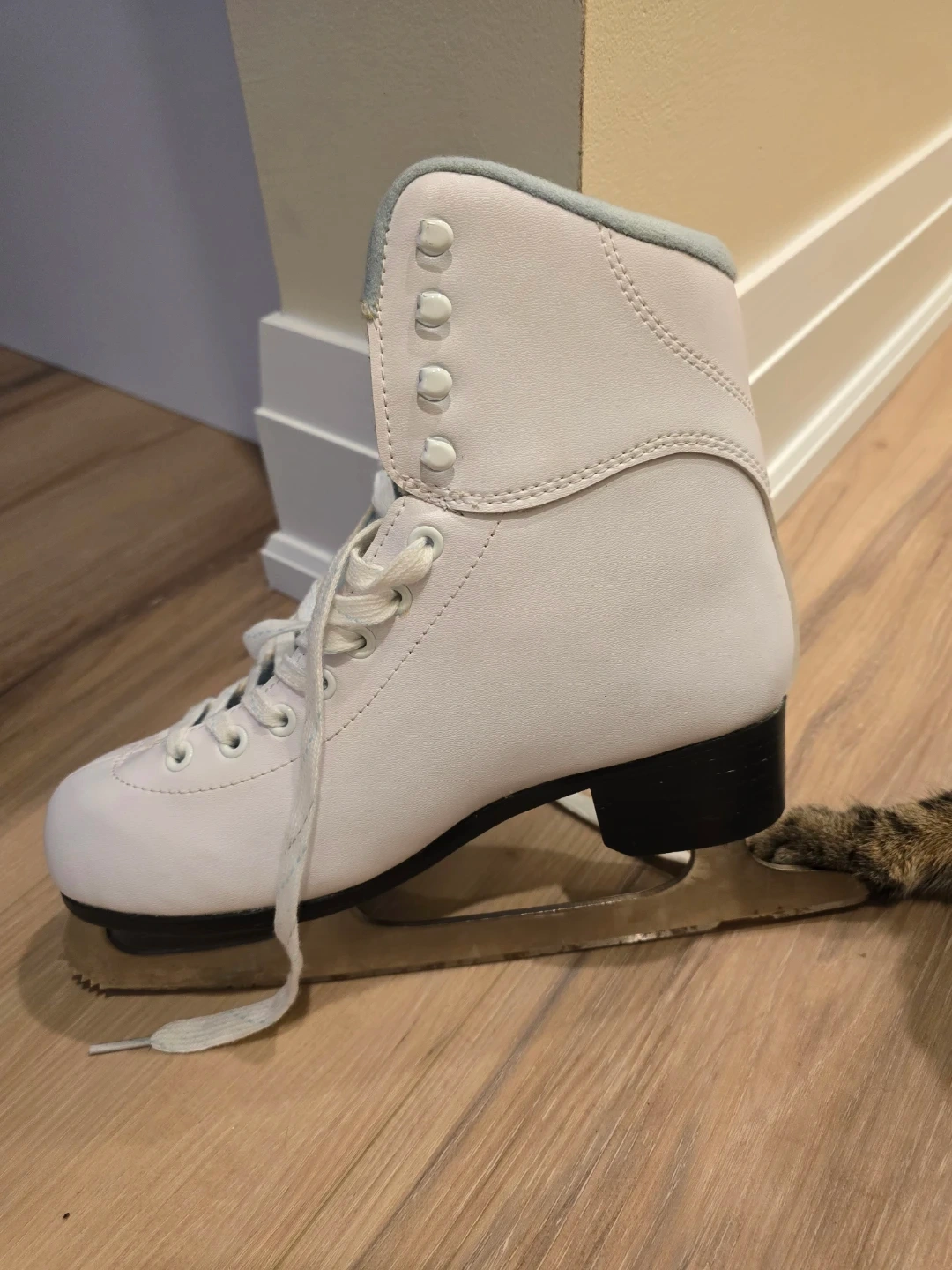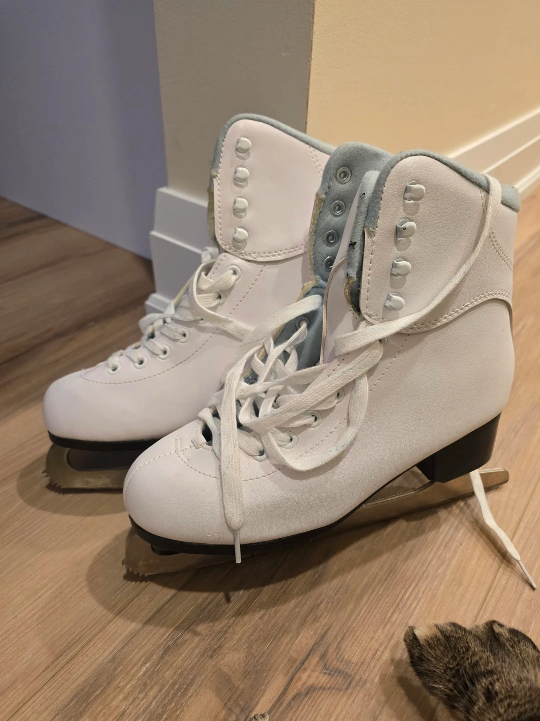 Selling a pair of Skyline ice skates in a women's size 7. They're white with a light blue interior. Perfect for hitting the ice rink this winter!