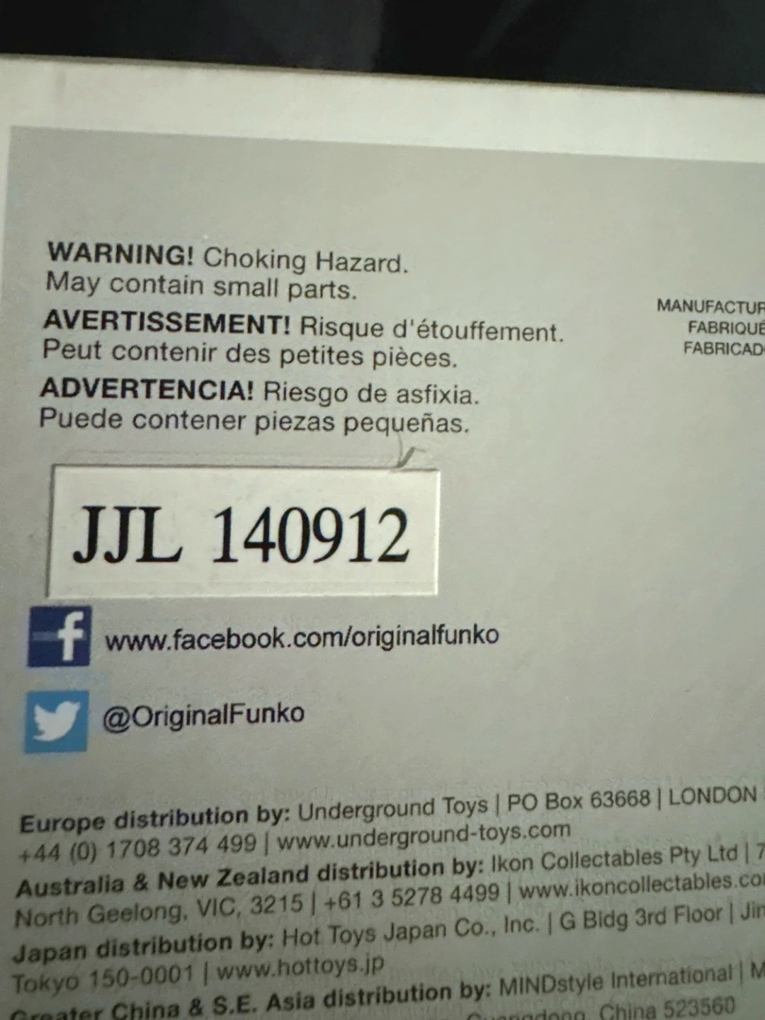 Produced by Funko POP! Television - #25. Box No. JJL 140912.